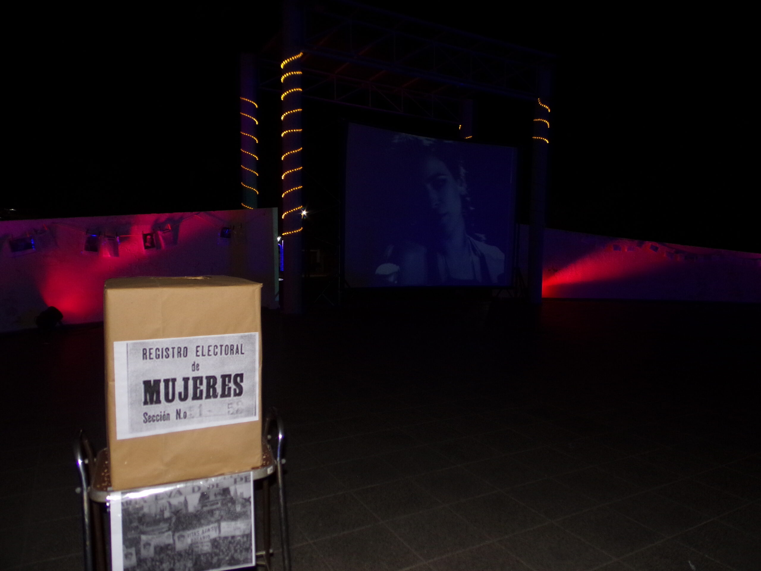 En la parte central del espacio, se destacaron tres decorados que resaltaban momentos claves de la historia argentina que dieron origen al movimiento feminista.