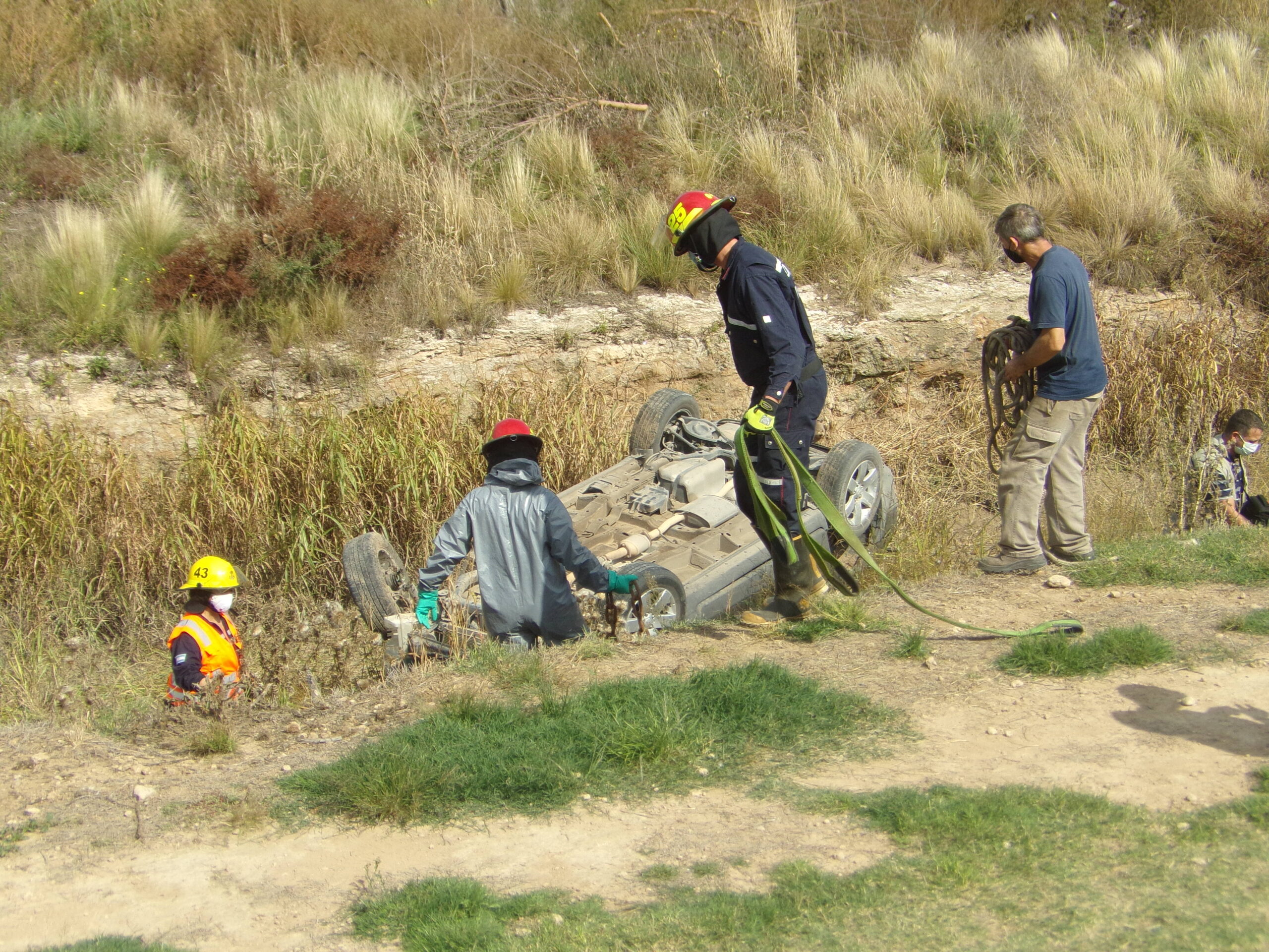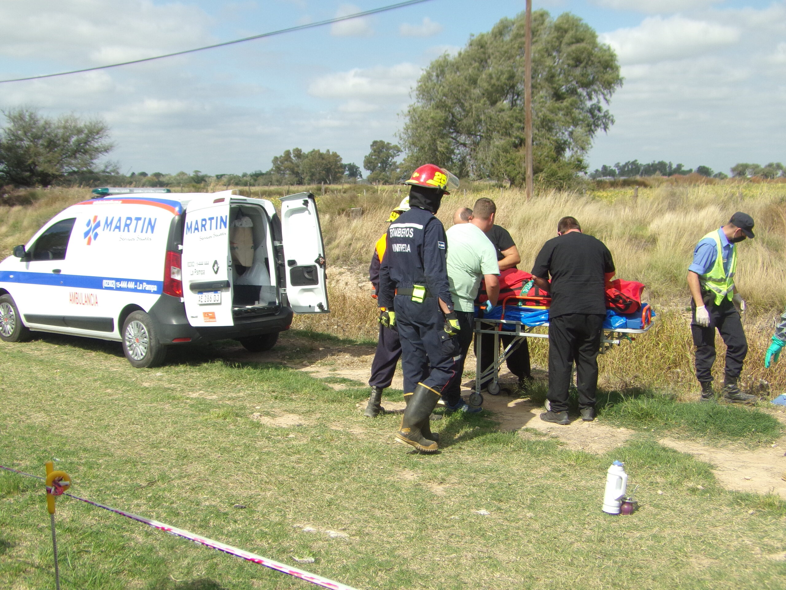 Alertados de la situación, policías, bomberos y personal del hospital llegaron casi en simultáneo al lugar de la tragedia. Allí observaron una camioneta con sus cuatro ruedas hacia arriba, la cabina aplastada por el impacto y una persona en su interior. La doctora Daiana Lebed fue quien constató que no tenía signos vitales. Tras esto, el comisario Matías Vargas convocó a la División Criminalística de la Unidad Regional I y a la Agencia de Investigación Científica (AIC), ambas con sede en Santa Rosa. El personal de dichas reparticiones se constituyó en el sitio donde realizó las pericas de rigor, para lo cual utilizó un drom, entre otros elementos.