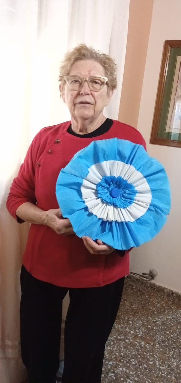 La iniciativa había sido lanzada desde la secretaría municipal de Cultura para celebrar un nuevo aniversario de la Revolución de Mayo de 1810 que culminó con el primer Gobierno Patrio. Al respecto, la directora de Cultura, Claudia Vesbeek, explicó cómo surgió esta propuesta. «Como este año otra vez nos quedamos sin acto y sin la posibilidad de hacer otro tipo de actividades» debido al confinamiento, «cada uno desde su casa podía crear una escarapela, vestirse de época o lo que quisiera hacer para manifestarse con motivo de esta fecha patria». Lo que más entusiasmó fue la creación del símbolo nacional. En este sentido, destacó «a las seños del CDI (Centro de Desarrollo Infantil) y a la coordinadora del Cumelén, quienes bajaron estas propuestas» a los niños/as y a los adultos mayores respectivamente. «Las que fueron acercadas al municipio las hemos colocado en las puertas de ingreso, pero hubo muchas escarapelas más que por diversos motivos no llegaron. Sucede que algunas personas estaban aisladas, otras no querían salir de sus casas, pero vimos a través de las redes que la gente se enganchó con esta propuesta» compartiendo sus creaciones de manera virtual.