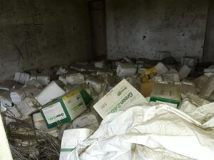 Winifreda: descubren depósito ilegal de bidones de glifosato en escuelita rural abandonada