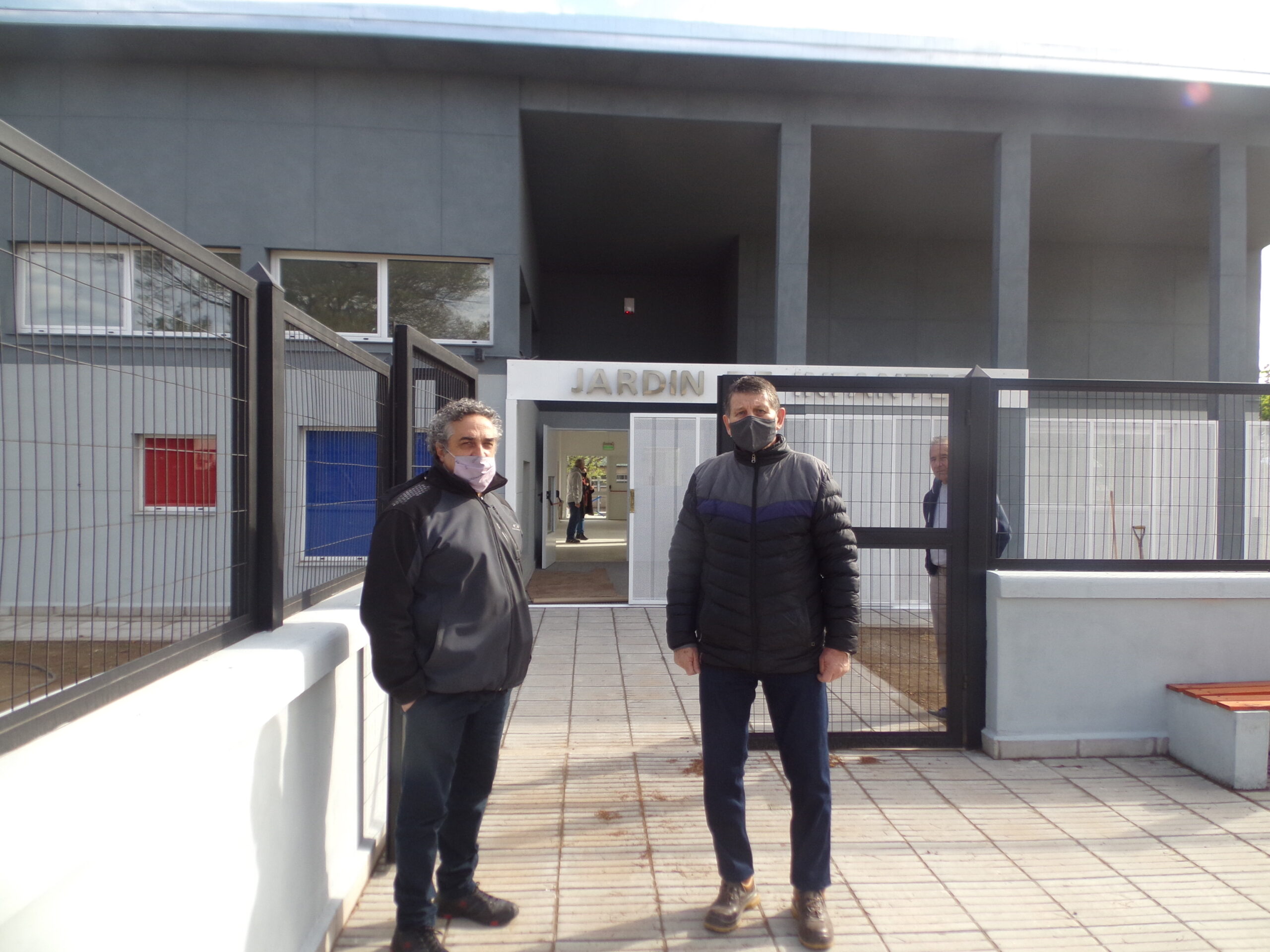 FOTO: Leonardo Álvarez y el Ricardo Cuello, detrás el Jardín de Infantes terminado