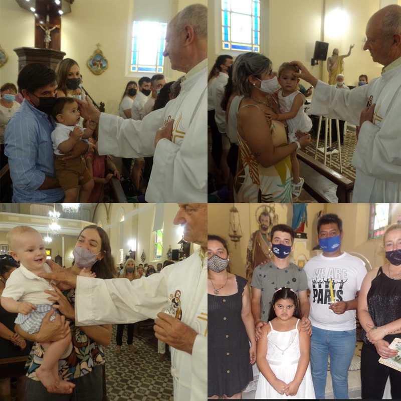 Los protagonistas de la ceremonia fueron tres bebés y una niña de 6 años. Recibieron los símbolos del bautismo que son el aceite, el agua y la luz. En este sentido, el sacerdote explicó el significado de cada uno. «El aceite como todos sabemos por la experiencia de la vida diaria nos ayuda a tener la necesaria movilidad y agilidad para el desempeño de nuestras actividades así como los aceites hacen funcionar bien las maquinarias o simplemente los utilizamos en nuestros alimentos para que sean más apetitosos. El agua es condición de vida y un elemento de purificación ya que con ella nos aseamos. Y finalmente la luz. Siempre sostengo que en una oscuridad una luz por más pequeña que sea siempre se va a notar su brillo, y esa es la misión de todo cristiano: ser luz de Cristo en medio de este mundo».