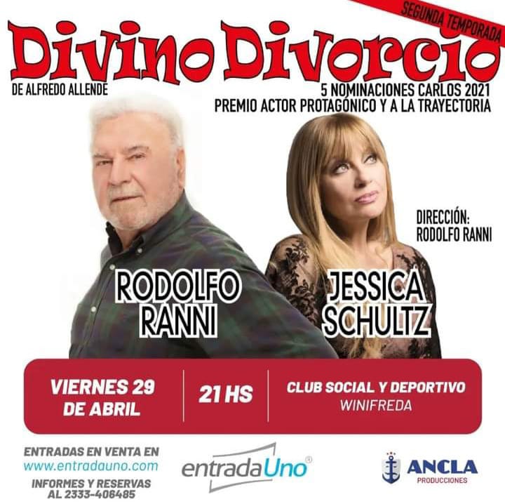 Rodolfo Ranni, uno de los grandes actores del teatro argentino, llegará a Winifreda con su obra de teatro «Divino Divorcio». Compartirá el escenario con la actriz Jessica Schultz. Desde la secretaría municipal de Cultura anunciaron con anticipación que el 29 de abril, a las 21 horas, ambos artistas nacionales se presentarán en la sede del … Sigue leyendo Rodolfo Ranni llegará en abril a Winifreda con la comedia «Divino Divorcio»