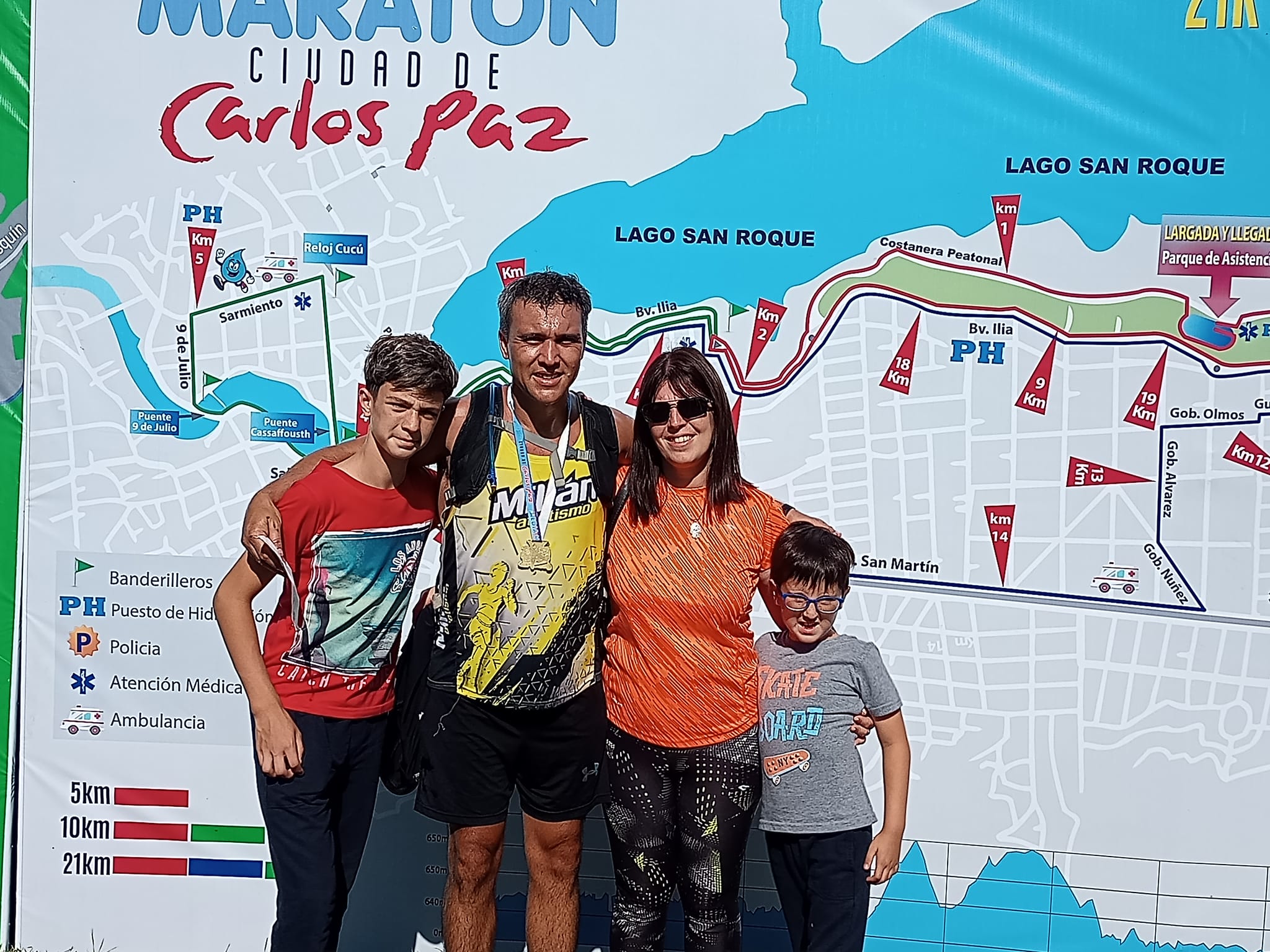 Diego fue uno de los pampeanos que participó, el fin de semana, de la Media Maratón de Carlos Paz, una clásica competencia de la ciudad cordobesa. Hasta allí viajó con su esposa e hijos. «Es una carrera de 21 kilómetros por un circuito que pasa por la costanera del lago San Roque. Claudio Feininger, un amigo de Córdoba, también winifredense, me venía pidiendo que la corriéramos juntos y finalmente lo pudimos hacer. Los dos llegamos a la meta y el tiempo que hicimos es anecdótico», contó Platner. «Este deporte lo inicié por cuestiones de salud y produjo un cambio radical en mi vida cuando pensaba que nunca lo iba a lograr», añadió.