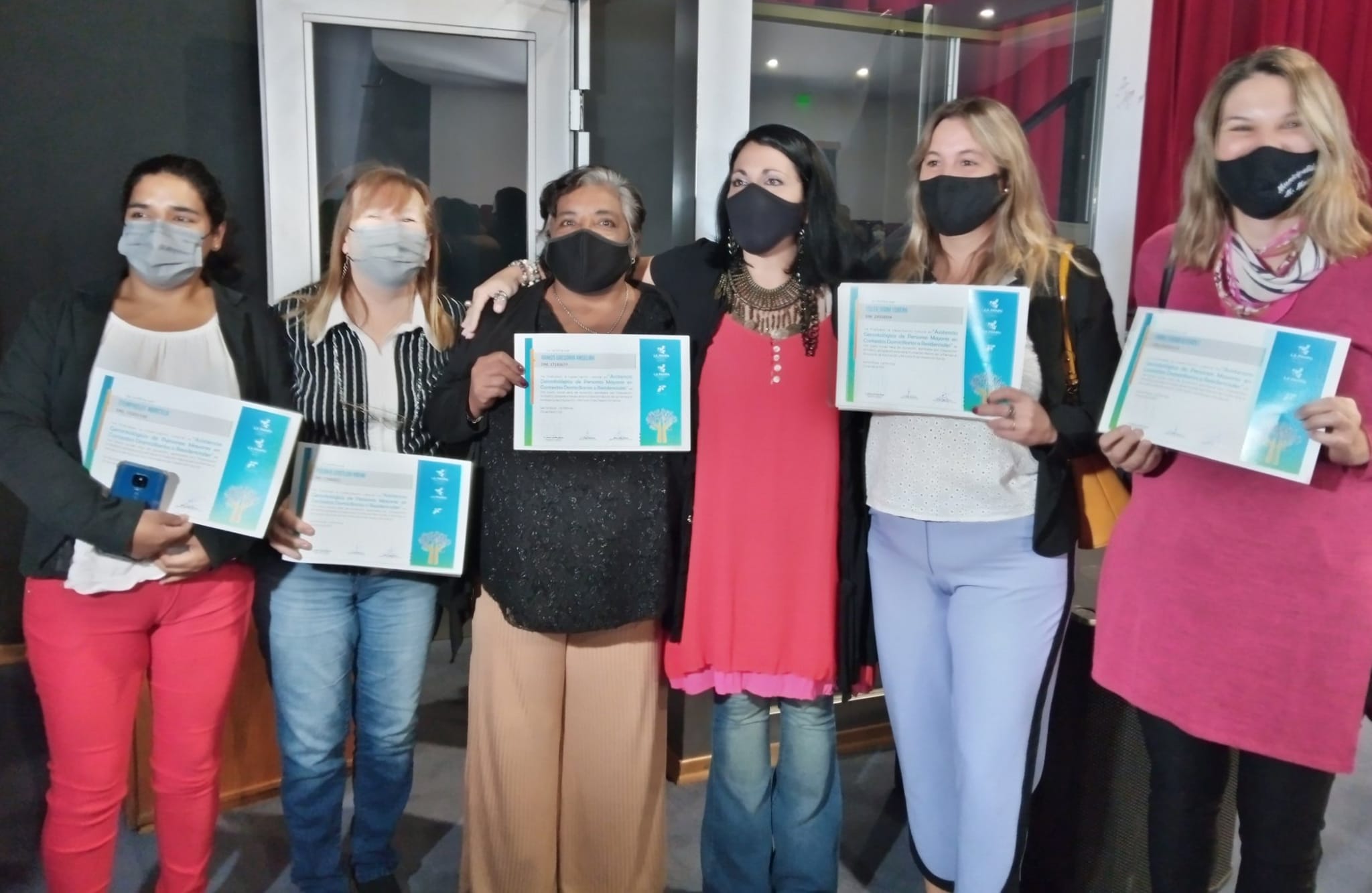 Vecinas de Winifreda y Mauricio Mayer culminaron la capacitación de «Asistencia gerontológica de personas mayores en contextos domiciliarios o residenciales» y recibieron sus certificados, en un acto desarrollado ayer en Santa Rosa.
