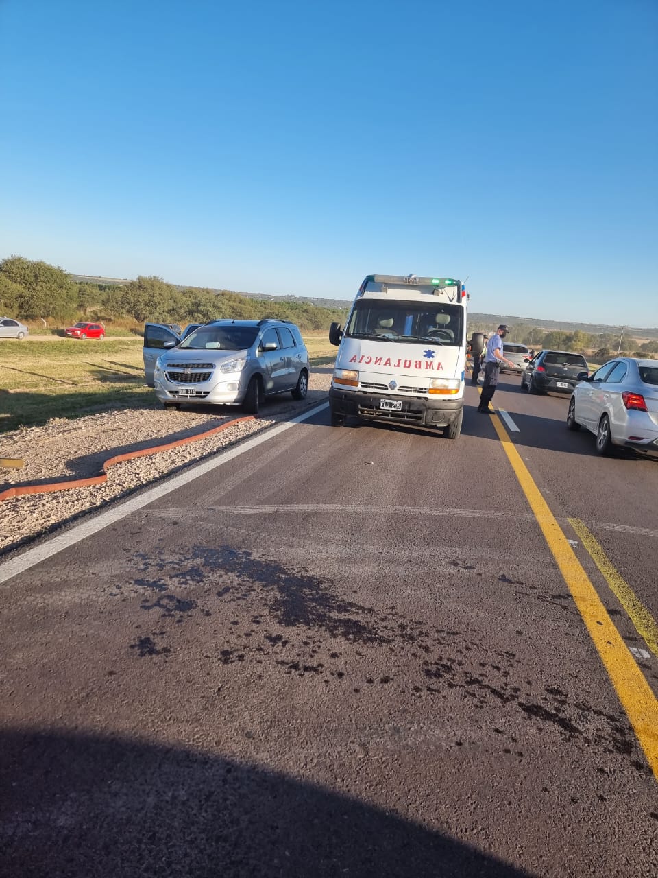 «La policía estaba dirigiendo el tránsito y cuando vamos subiendo una pendiente se corta el tráfico. De lejos una persona nos hacía señas, avanzamos con cuidado y cuando llegamos al lugar del hecho nos encontramos con una triple colisión», recordó Arias. Los vehículos involucrados eran un Chevrolet Spin (San Luis) conducido por una mujer, un Fiat Uno (Macachín) al mando de una mujer y un Peugeot 206 (Santa Rosa) manejado por un hombre. «Estaba un móvil policial y minutos después llegó otro móvil de Accidentología con un policía oriundo de Winifreda. Encontramos un total de 12 personas distribuidas entre los tres autos. La mayoría estaba afuera de los rodados a excepción de una menor de edad que permanecía muy dolorida en el habitáculo de la Spin, no se bajó en ningún momento», precisó.
