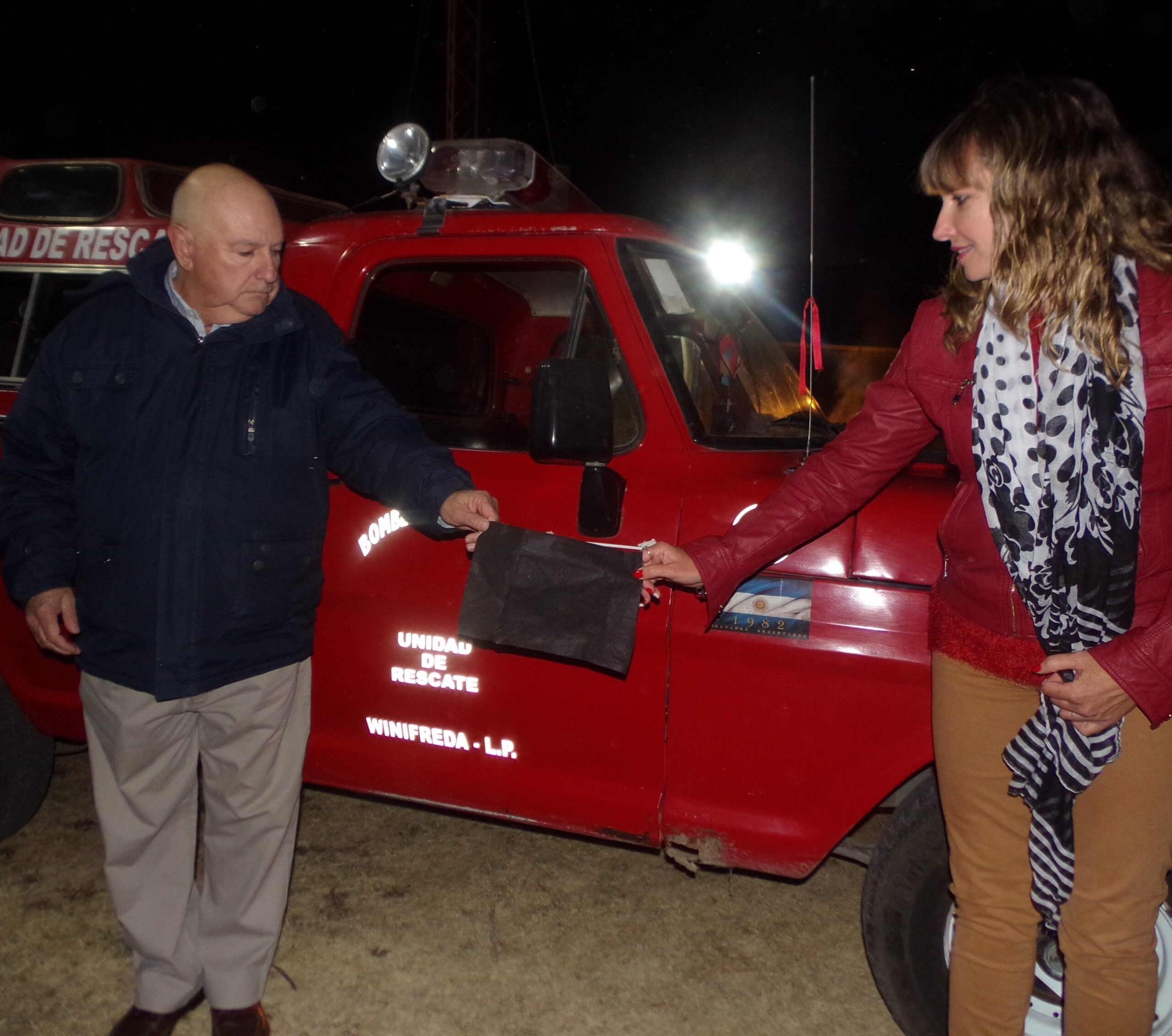 El móvil 1 del Cuartel de Bomberos Voluntarios de Winifreda, desde el sábado, lleva impreso en su carrocería el nombre de Héctor Omar Minutta «Cholo», en homenaje a quien fuera uno de los fundadores de la institución e integrante del primer cuerpo activo de servidores públicos formado en 1999. También, una placa con su patronímico fue descubierta en el interior del edificio de la Asociación Civil Bomberos Voluntarios.
