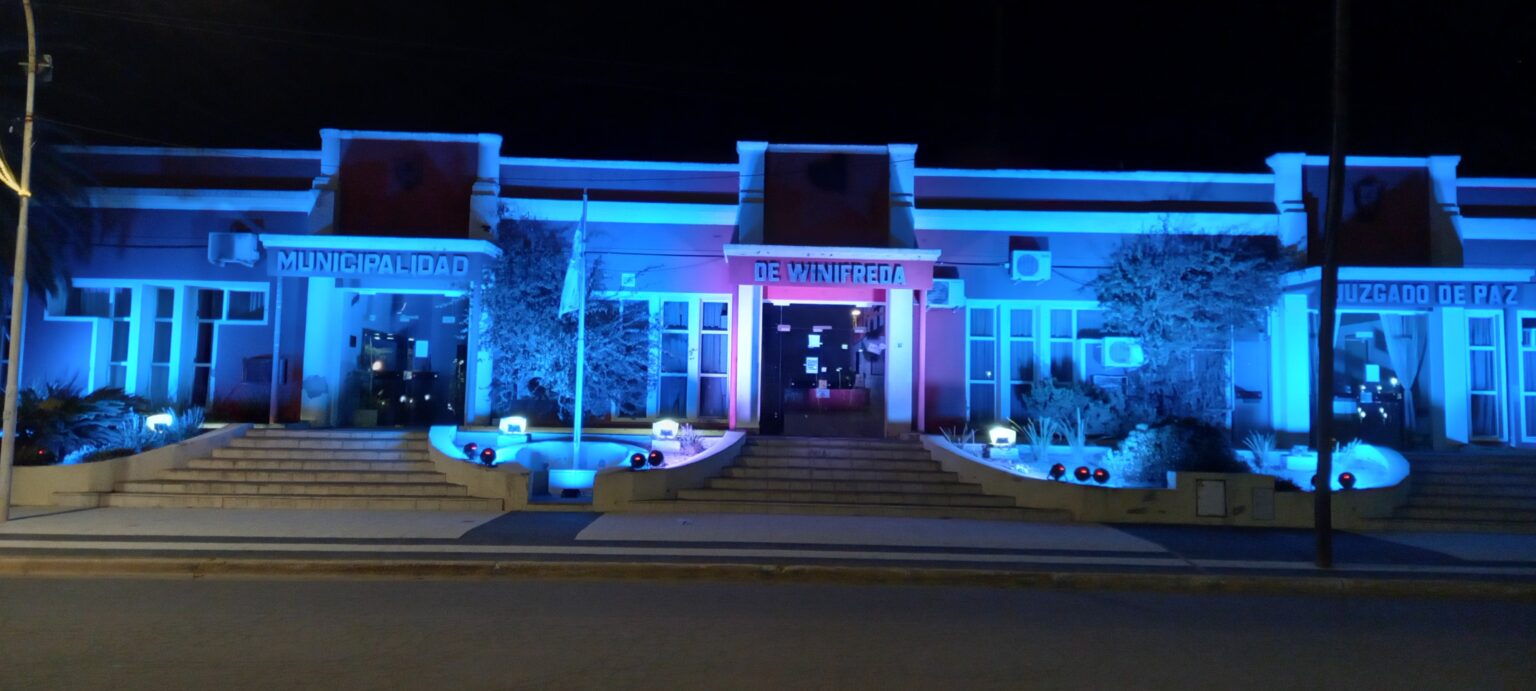 Los colores celeste y blanco brillan desde anoche en la fachada de la Municipalidad de Winifreda. La atractiva iluminación permanecerá encendida en horario nocturno durante todo este fin de semana extra largo. Es parte de la ornamentación para celebrar el Día de la Bandera el 20 de junio, homenajear al nuestro gran símbolo nacional y … Sigue leyendo Edificio municipal se iluminó de celeste y blanco