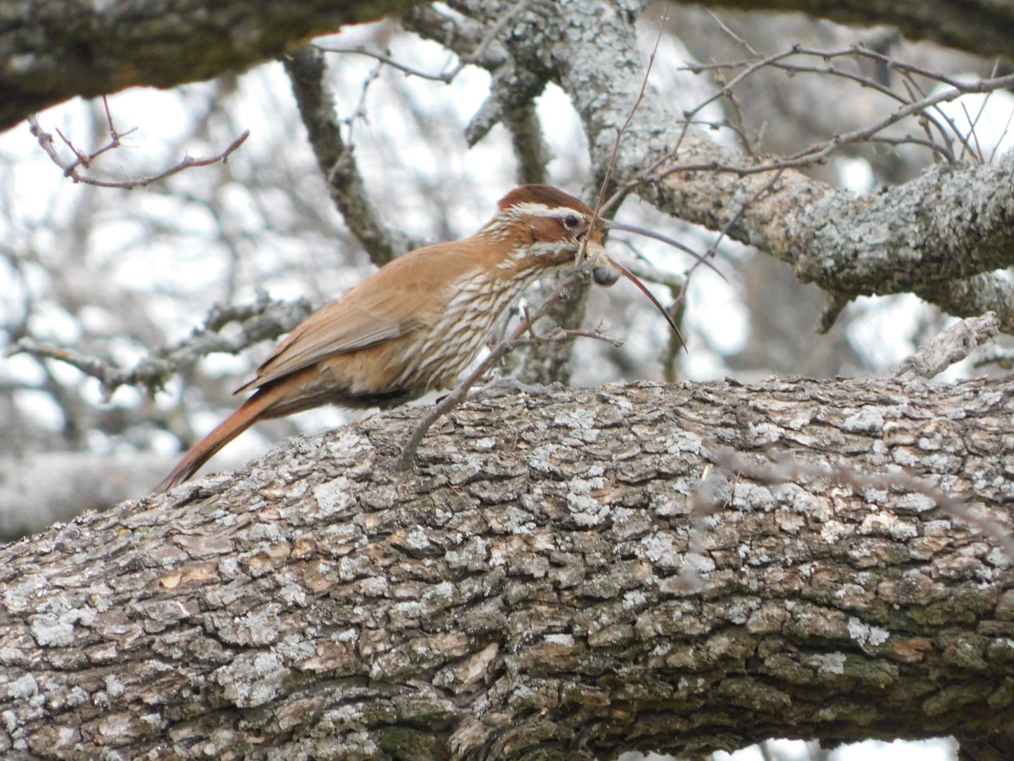 Un Cacholote Castaño, característico del monte y de las arboledas donde arma su nido de palitos con y sin espinas y de forma alargada como si fuera un túnel, con la boca de entrada hacia abajo.