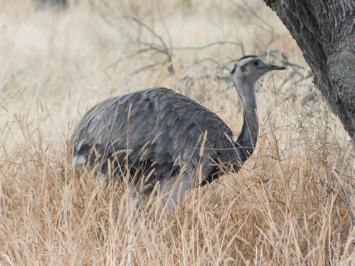 Ñandú, tiene plumas, pero no vuela, corre muy rápido.