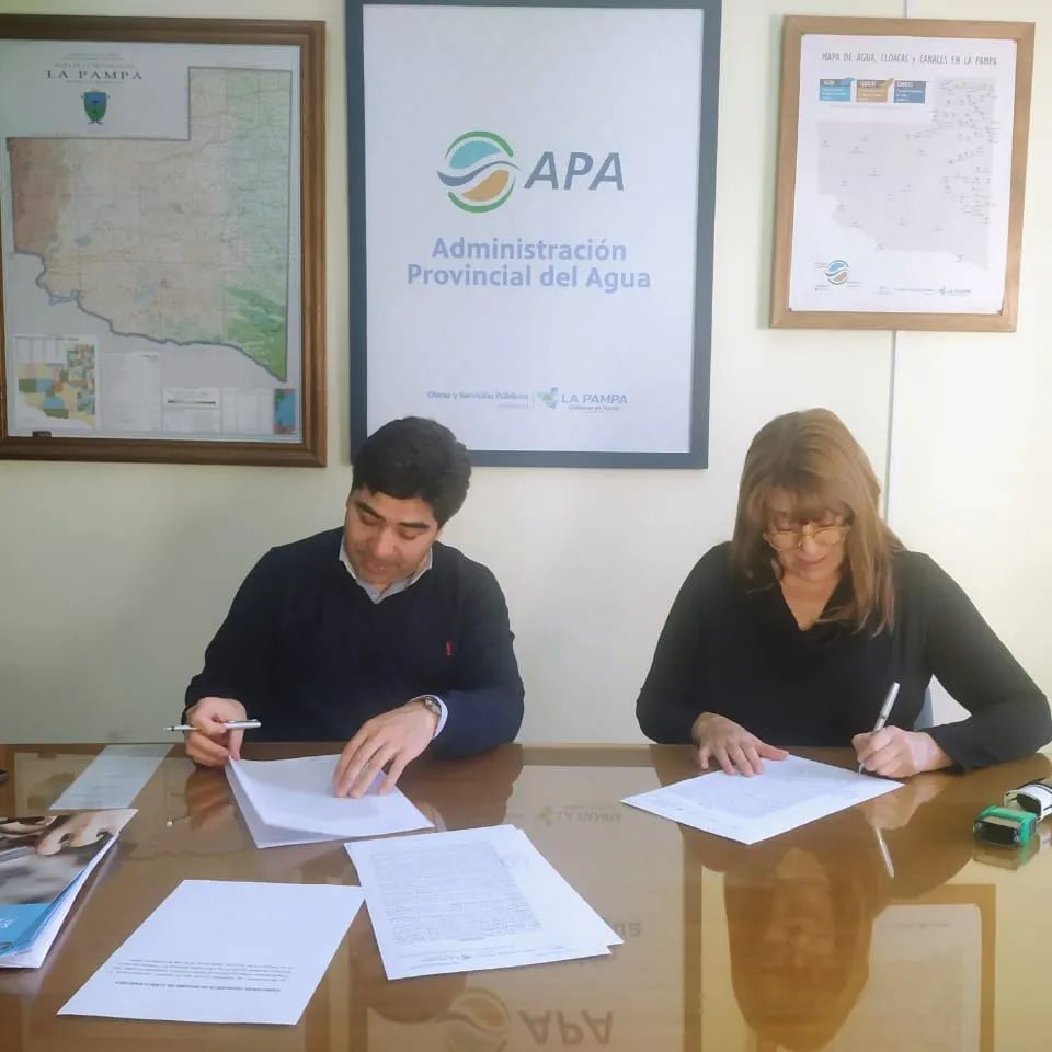 La intendenta de Winifreda, Adriana García y el titular de la Administración Provincial del Agua (APA), Fabricio González Martín, firmaron un convenio para el mantenimiento y limpieza de desagües pluviales de la localidad. Los trabajos ya comenzaron y serán solventados con un aporte no reintegrable que Provincia girará al Municipio.