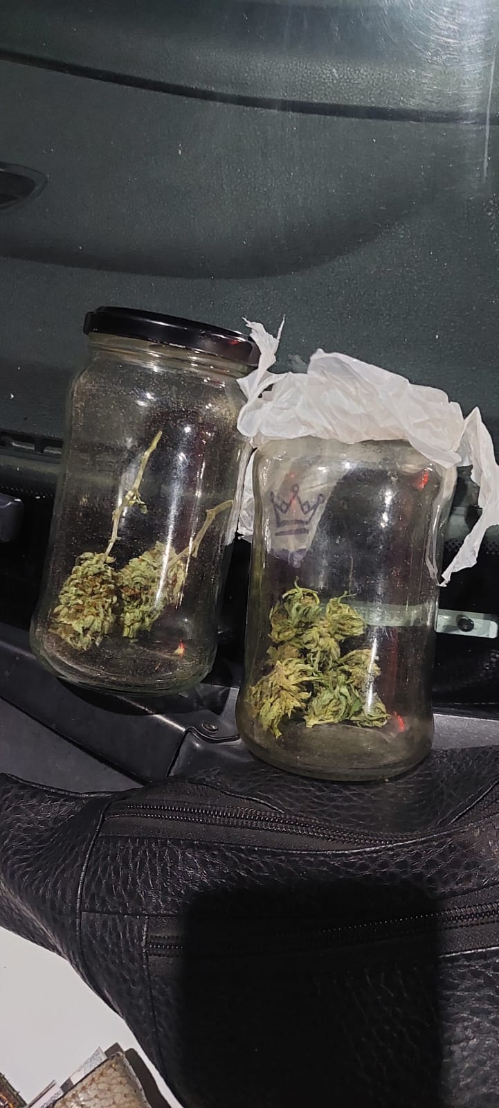 Posteriormente, pararon a otro vehículo de la misma marca y a su conductor le secuestraron un frasco de plástico con sustancia vegetal de fuerte olor. La misma arrojó resultado positivo al test de marihuana.