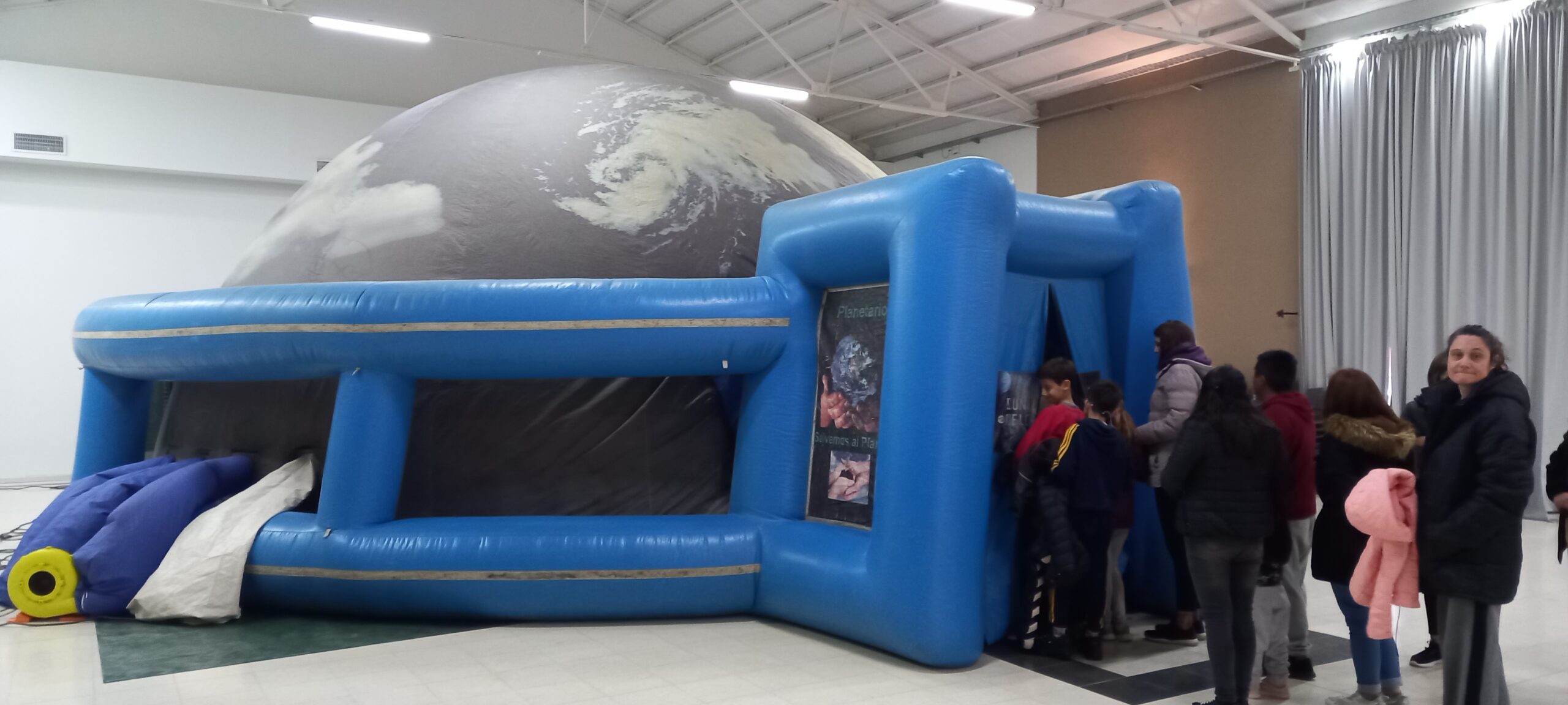 El Planetario Móvil “Estrella del Plata” iba a instalarse el sábado en la plaza San Martín, pero debido a la llovizna reinante fue desplegado en la sede del Club Social. Familias winifredenses y de otras localidades pampeanas ingresaron a una cúpula inflable donde vivieron una experiencia astronómica, un show de dinosaurios y recitales mediante imágenes proyectadas en 360 grados.