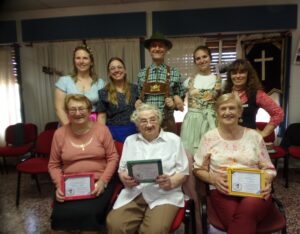 La Asociación Descendientes de Alemanes en La Pampa realizó el domingo pasado, en coincidencia con el Día del Inmigrante, una actividad en conjunto con la Municipalidad de Winifreda para homenajear a descendientes de la colectividad. En esta ocasión, se reconoció a las vecinas Bárbara Keler, Guillermina Heck y María Gruber vda. de Guinter. Todas ellas … Sigue leyendo Winifreda: cálido y divertido homenaje a tres vecinas descendientes de alemanes