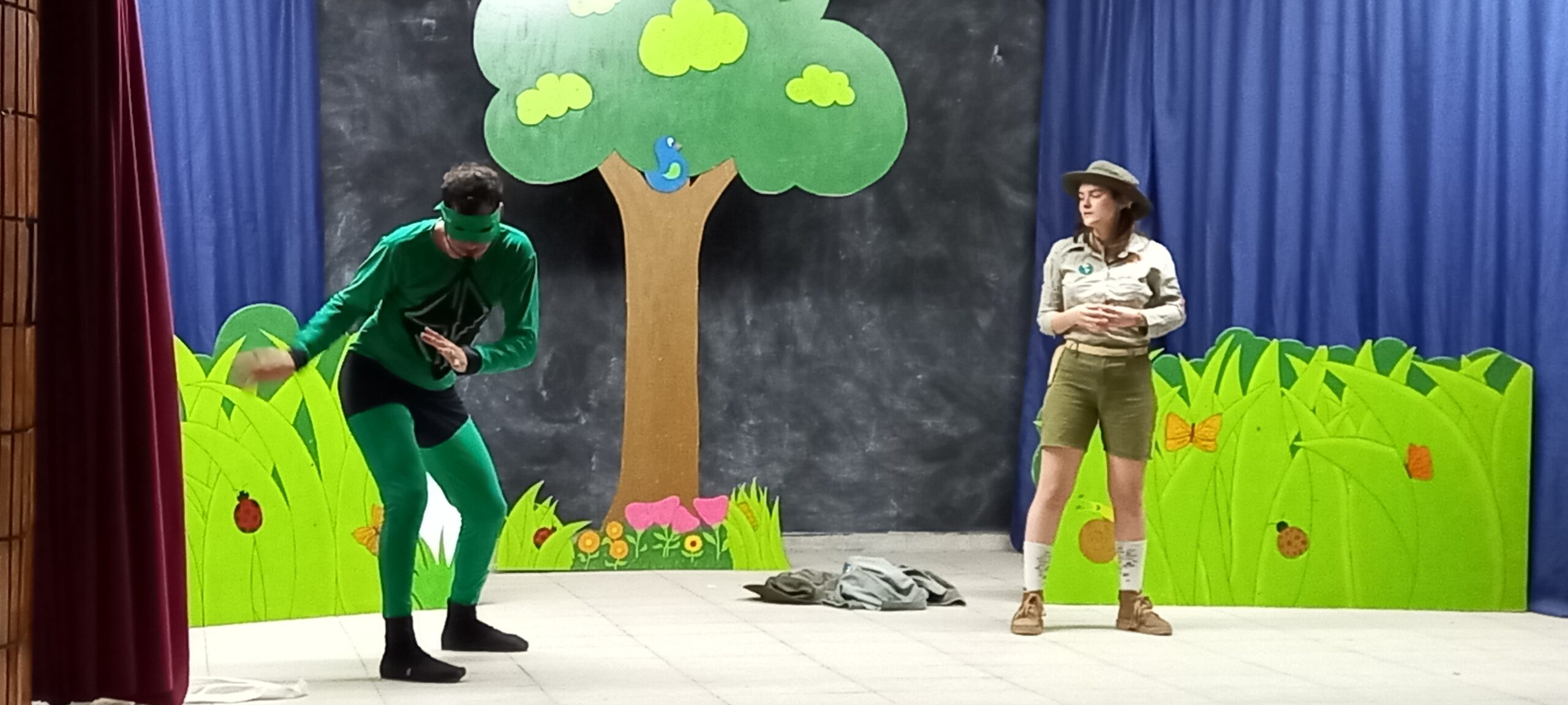 Leandro Ghiglione y Jazmín Álvarez integran Guardianes. Eco, una agrupación ecológica-cultural de General Pico. Invitados por la Municipalidad de Winifreda, presentaron en la Escuela 104 una obra de eco-teatro titulada “Guardianes 1-Basura 0”.
