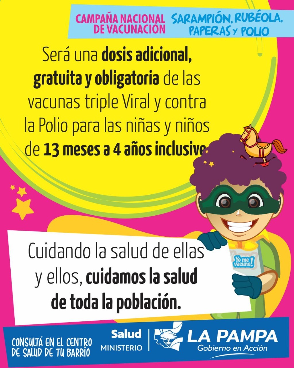 En diálogo con la Agencia Provincial de Noticias, Bertone sostuvo que «se aplicará una dosis adicional, más allá que los chicos tengan el calendario de vacunas completo. Esta es una dosis extra de vacunas que normalmente se usan en el calendario, como son la triple viral y contra la poliomielitis. La campaña inicia el 1 de octubre hasta el 13 de noviembre, donde hay unos 17 mil chicos para vacunar en La Pampa».