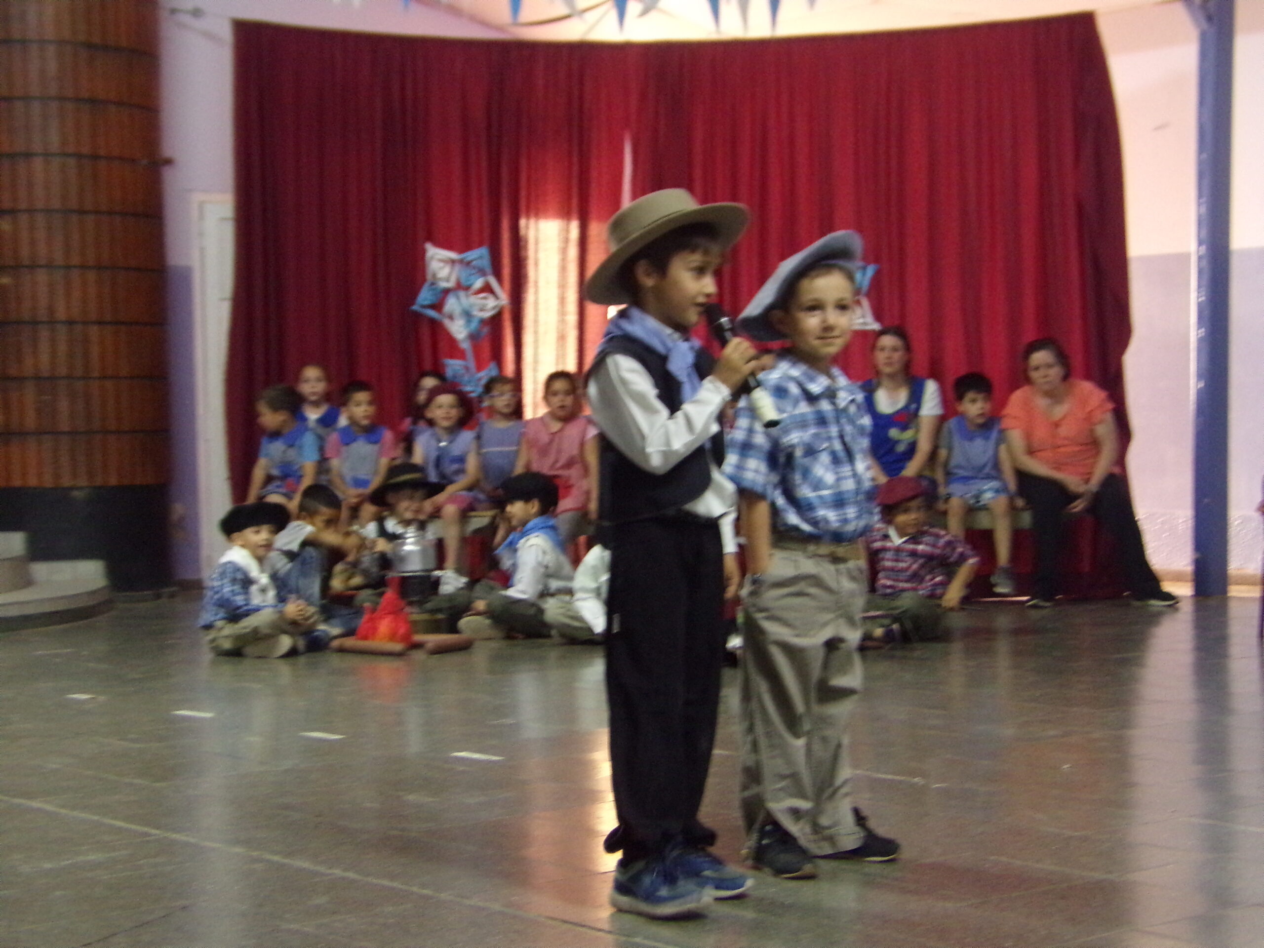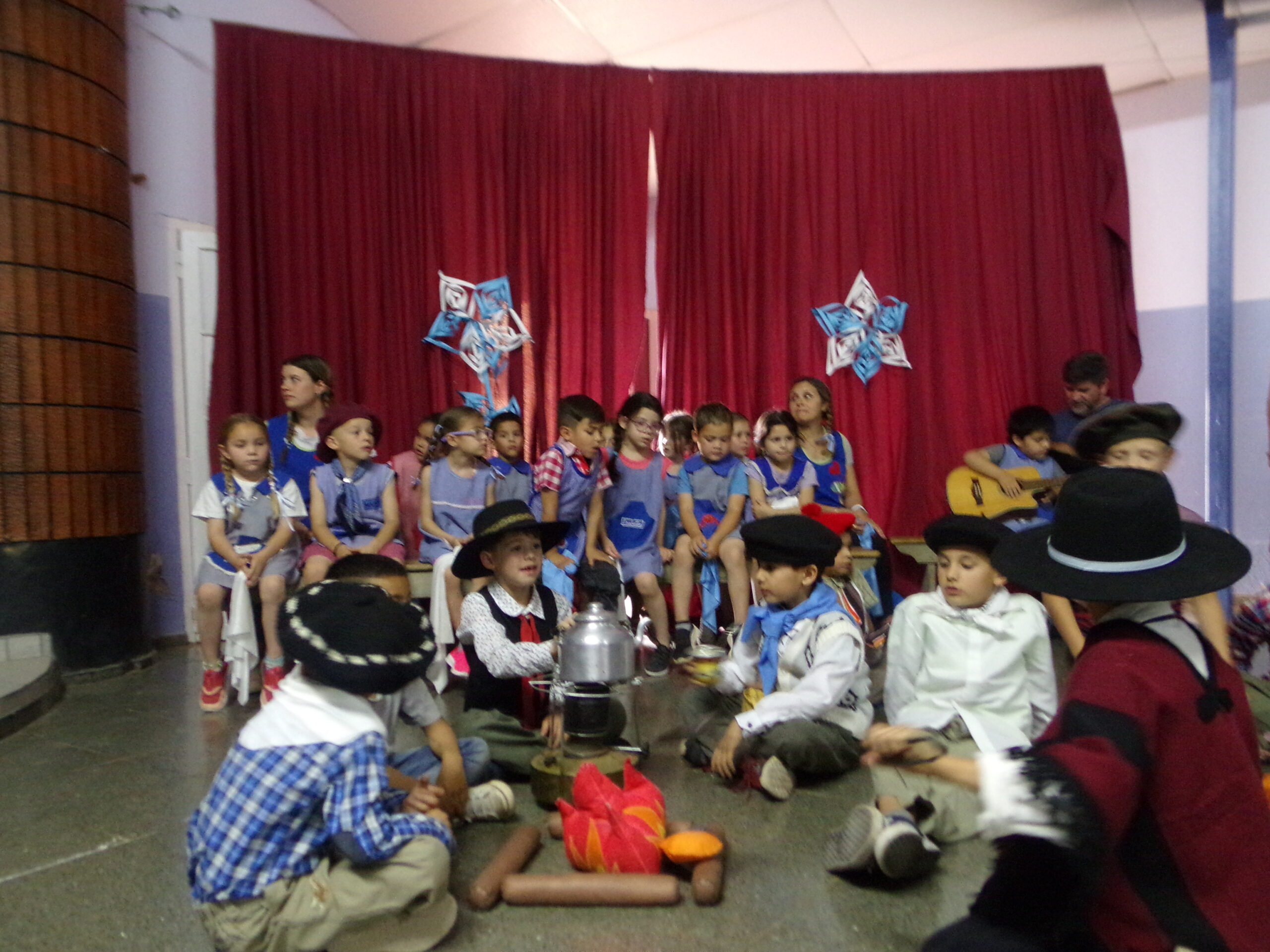 Luego, niños y niñas de primero y segundo grado pusieron en escena las tradiciones que nos representan como argentinos y argentinas. Para ello recrearon una peña, un ámbito de encuentro y de disfrute para muchas familias. La primera presentación artística estuvo a cargo de los jardineritos y sus docentes, como «invitados especiales» bailaron la canción titulada «chacarera de la bienvenida» mientras otro grupo compartía una mateada gauchesca.