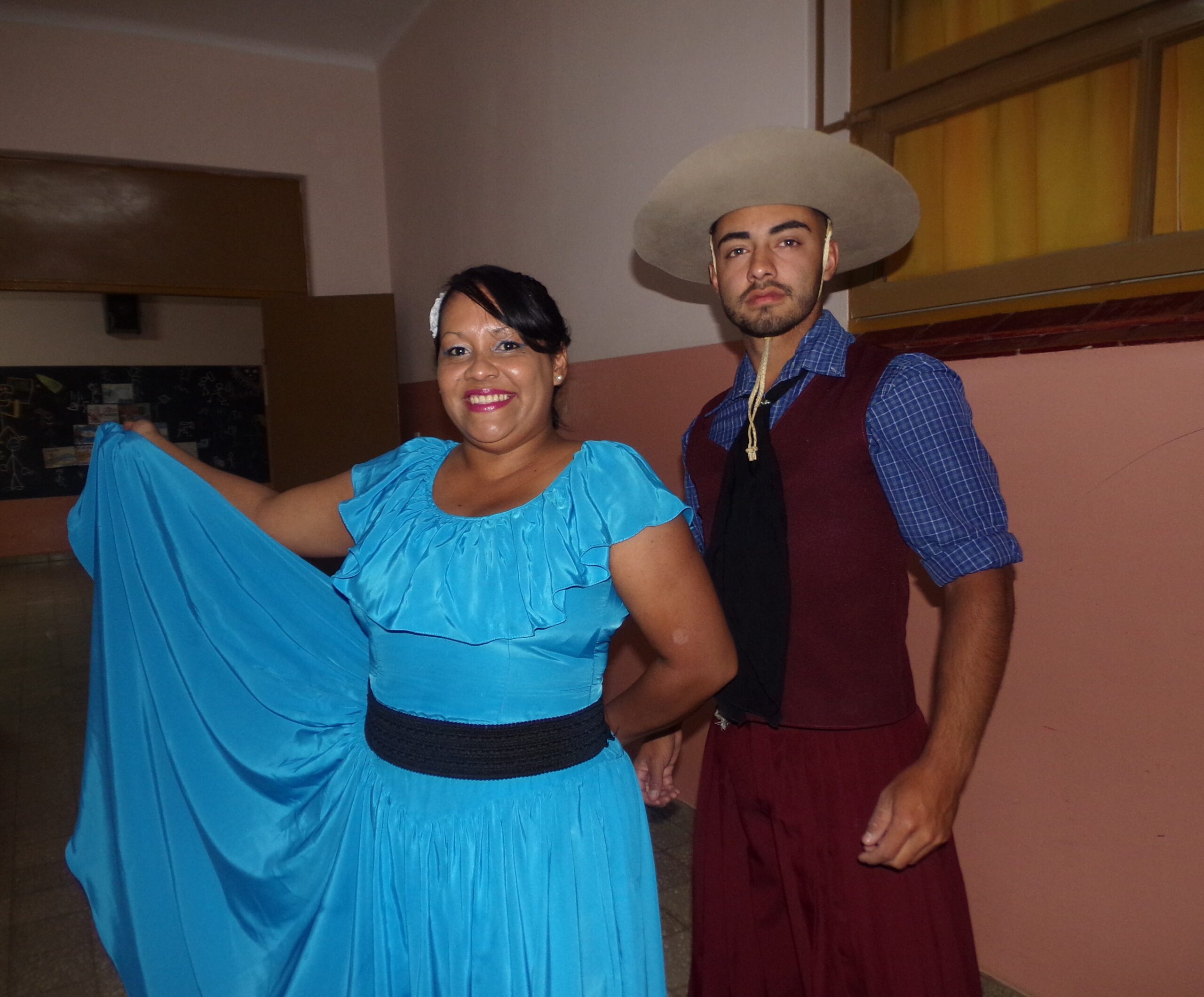 La vecina Natalia Gamarra y Eric Catalino bailaron una chacarera con la indumentaria adecuada. Las comidas típicas que cocinaban en la peña eran dulce de leche, asado, empanadas y pasteles. Participaron madres de alumnos, contando la elaboración de esos alimentos.