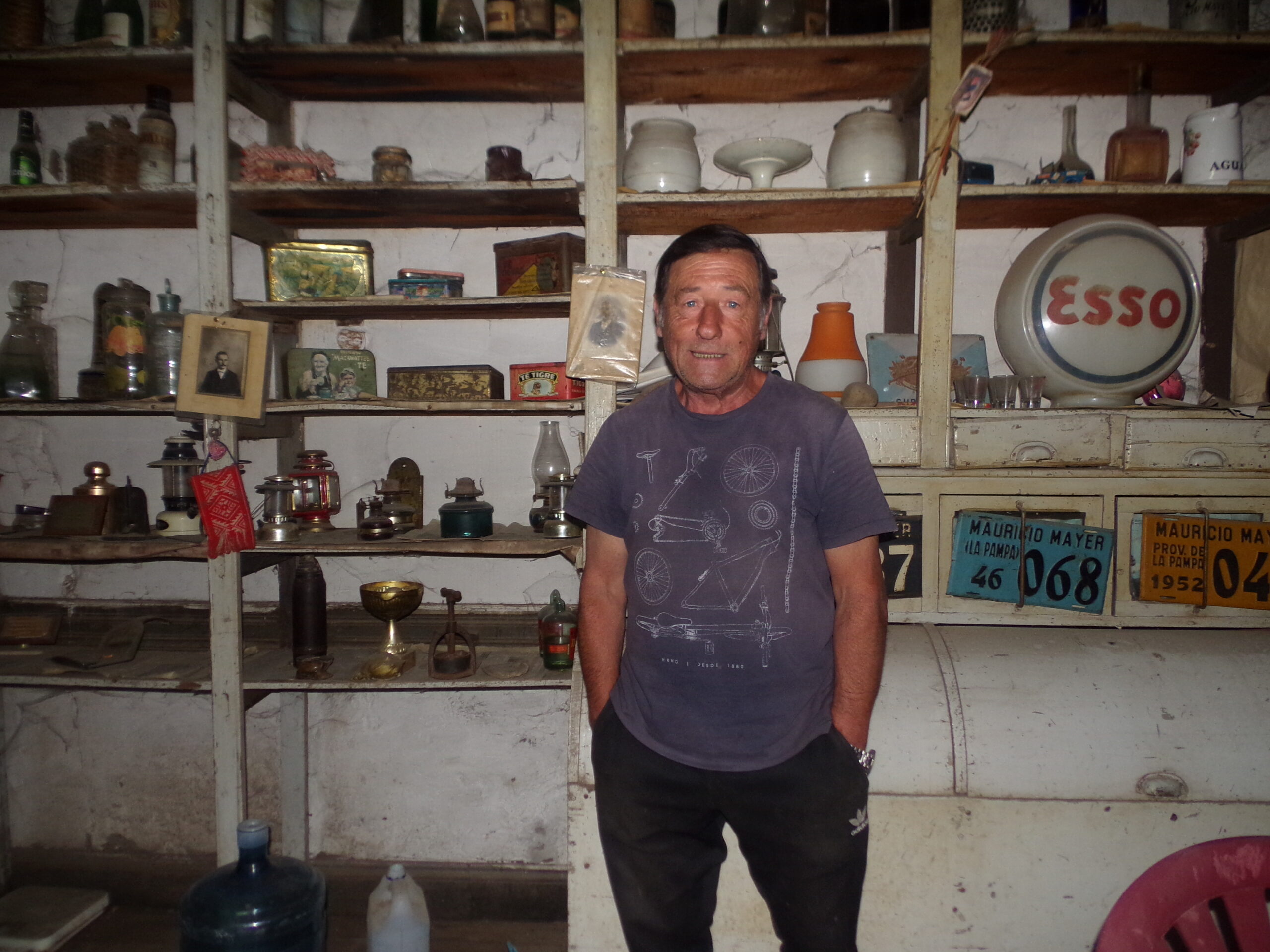 Los herederos del almacén fueron Irma Giordana -hija de Victorio- y su esposo David Justus, padre y madre de Luis Alberto. Lo administraron hasta que la actividad comercial fue decayendo. Luis Justus lo reconvirtió en un bar. «Lo atendí durante 20 años, ofrecía bebidas, picadas y juegos de cartas. Cuando comenzó la pandemia cerré el local», rememoró. El «sueño» del poblador es que este edificio histórico pueda ser refaccionado y convertido en museo. Detalló que atesora «una rueca de madera que era de mi abuela, con lanas hacía medias y pulóveres; tarros cremeros, chapas patentes de autos con la leyenda Provincia de La Pampa y Provincia Eva Perón, latas de té de Inglaterra, refrescos de Italia, faroles, una colecciones de sombreros y relojes, una bota de vino que me trajo mi prima desde España, una bota pamplona que me la regaló una tía de Colonia Barón, estribos de plata, planchas de carbón, jarros pingüinos, botellitas de gaseosas, carameleras y demás reliquias».