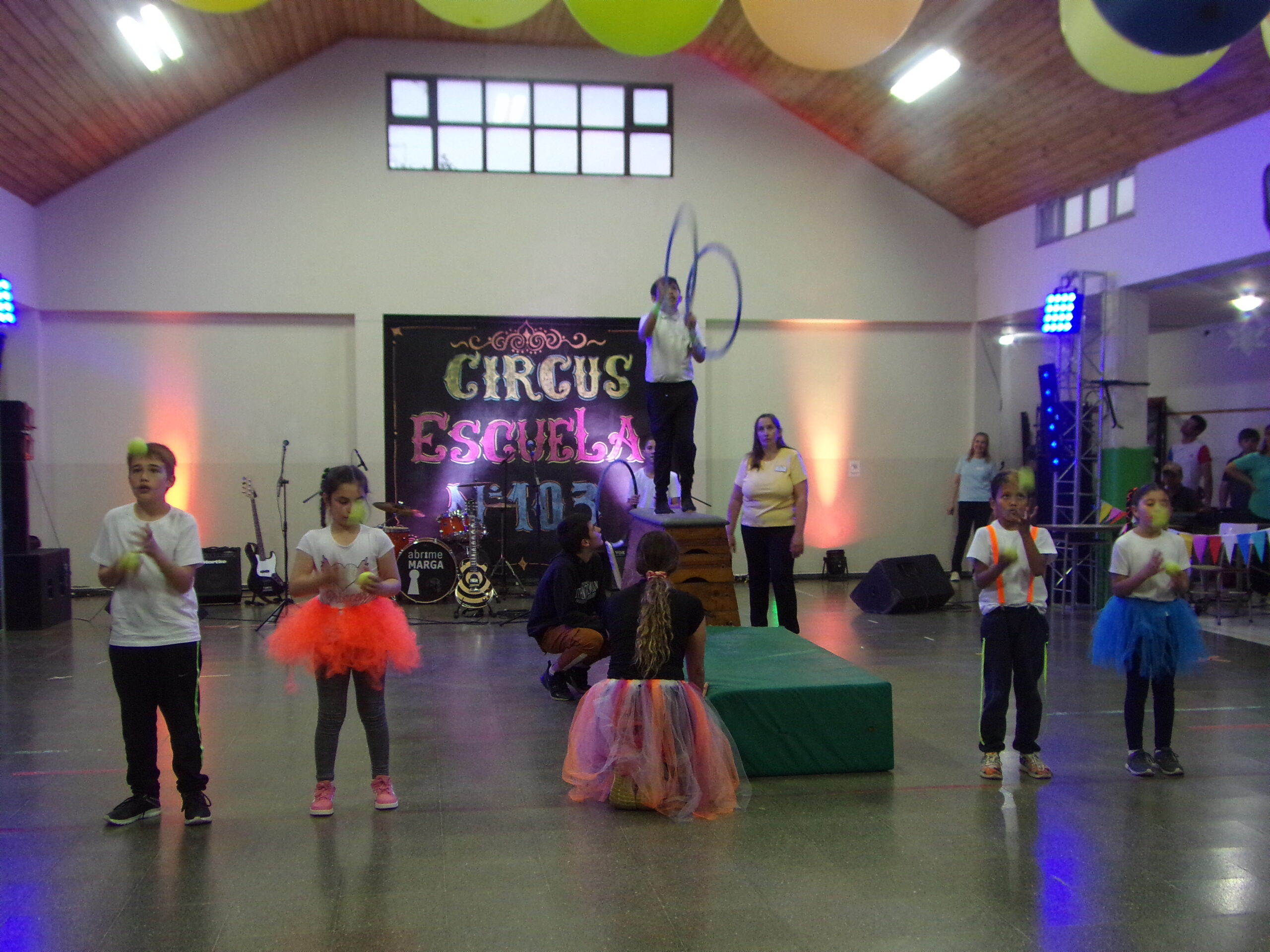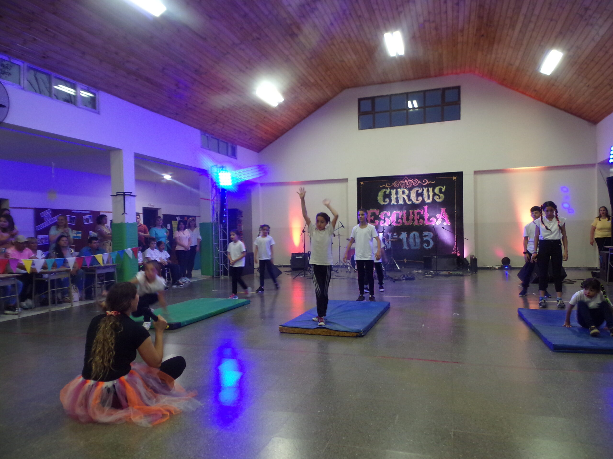 Los menores mostraron sus evoluciones sobre el cajón y las colchonetas. «Es la educación física tradicional, sin exigencias sino recreativa. A ellos les encanta hacer verticales y otras figuras, no paran. Sumamos coreografías circenses porque el circo abre muchas ramas, entre ellas malabares, habilidades, magia, humor. Niños y niñas estaban pintadas como los payasos y el último número fue un baile expresivo con luces luminosas preparado por la seño de Plástica», describió. «Nada más lindo que juntar todo eso y mostrarlo a la comunidad», añadió.