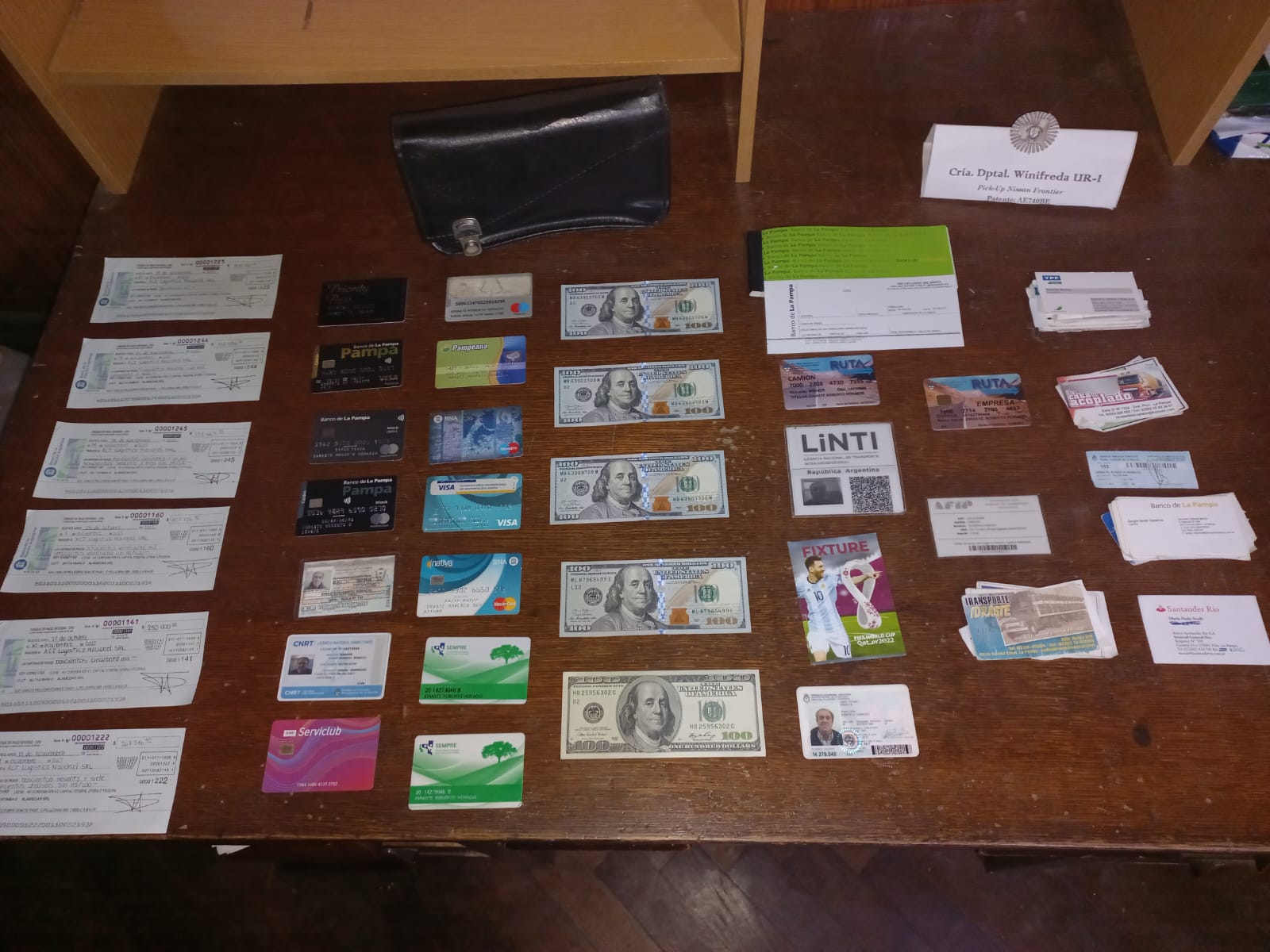 Un policía que presta servicios en la Comisaría Departamental de Winifreda encontró un portafolio con dólares, cheques, tarjetas de crédito y débito tirado sobre el acceso oeste y se lo devolvió a su dueño, un transportista de Colonia Barón. El trabajador del volante se había olvidado la cartera sobre la caja de baterías de su rodado cuando estaba cargando combustible. Llevaba casi 2 millones de pesos en su pertenencia. Se retiró de la dependencia muy contento y agradecido.