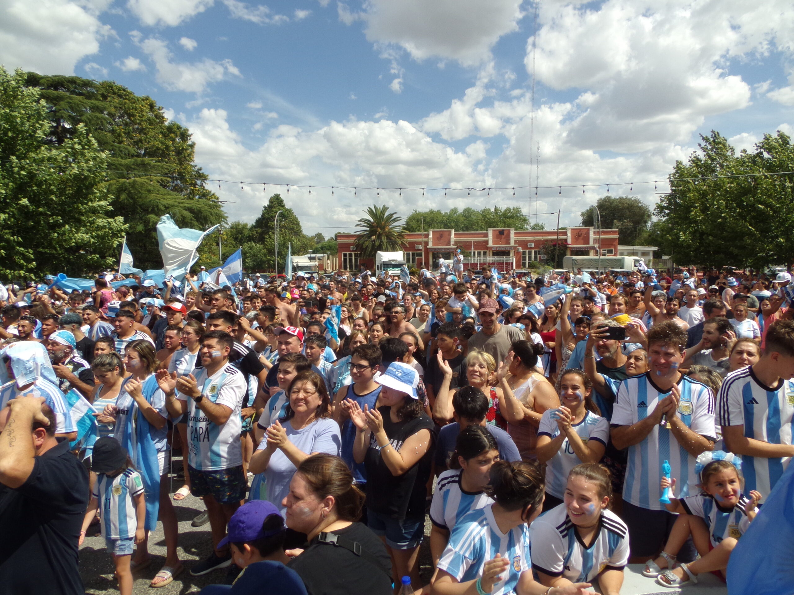 Uno de los momentos más emocionantes fue cuando niños, niñas, adolescentes, adultos, bebés en brazos de sus progenitores, se acercaron a la pantalla gigante para ver en vivo y en directo la transmisión de la TV Pública que mostraba el momento en que los futbolistas argentinos recibían medallas y el capital Lionel Messi levantaba la Copa del Mundo. Es que a sus 35 años, Leo consiguió lo único que le faltaba para terminar de decorar una brillante carrera: ser campeón mundialista. Hubo fuertes aplausos para el jugador pampeano Alexis Mac Allister. La euforia y la alegría son interminables.