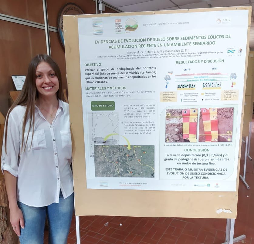 La académica señaló que «el 17 de noviembre me tocó exponer en el XXVIII Congreso Argentino de la Ciencia del Suelo, en la Facultad de Agronomía de la Ciudad de Buenos Aires. Desde mayo/junio venía preparando dos trabajos: a uno de ellos lo presenté como póster, y el otro, quedó seleccionado para exponer oralmente. Para mí fue una gran experiencia porque, en primer lugar, tuve la oportunidad de dar a conocer lo que ocurre en los suelos de nuestra región y, en segundo lugar, me permitió interactuar con personas de otras provincias o países que trabajan en temas similares, y es de esta manera como se crean los vínculos de trabajo, porque a partir de otras ideas, surgen nuevos interrogantes/hipótesis que uno busca darle respuesta a través de la investigación».