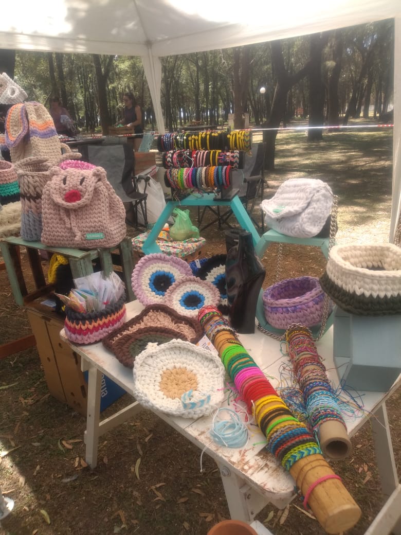 La emprendedora Florencia Ponce, de 25 años, teje al crochet y macramé con totoras de tela, también llamadas trapillos. Con gran variedad de colores, diseña las más lindas e innovadoras creaciones. Floreser se llama su emprendimiento. «Siento que planté una semilla y salió una flor», sostuvo. En cada feria popular muestra sus producciones manuales.