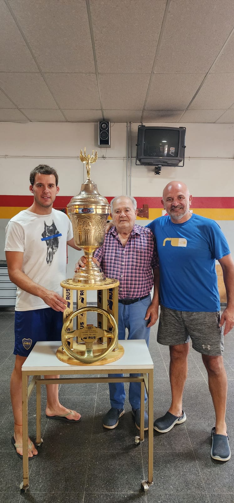 «Hoy 12 de enero, mi viejo junto a mi sobrino Alexis, celebran 70 años ininterrumpidos del mejor taller. 4 generaciones de esfuerzo y sacrificio», posteó en redes José Rodríguez, hijo de Antonio y tío de Alexis. Los tres posan para la foto dentro del taller junto a la Copa de Oro original que se adjudicó el piloto rionegrino José Manuel Urcera tras consagrarse por primera vez campeón del Turismo de Carretera (TC) con Torino.
