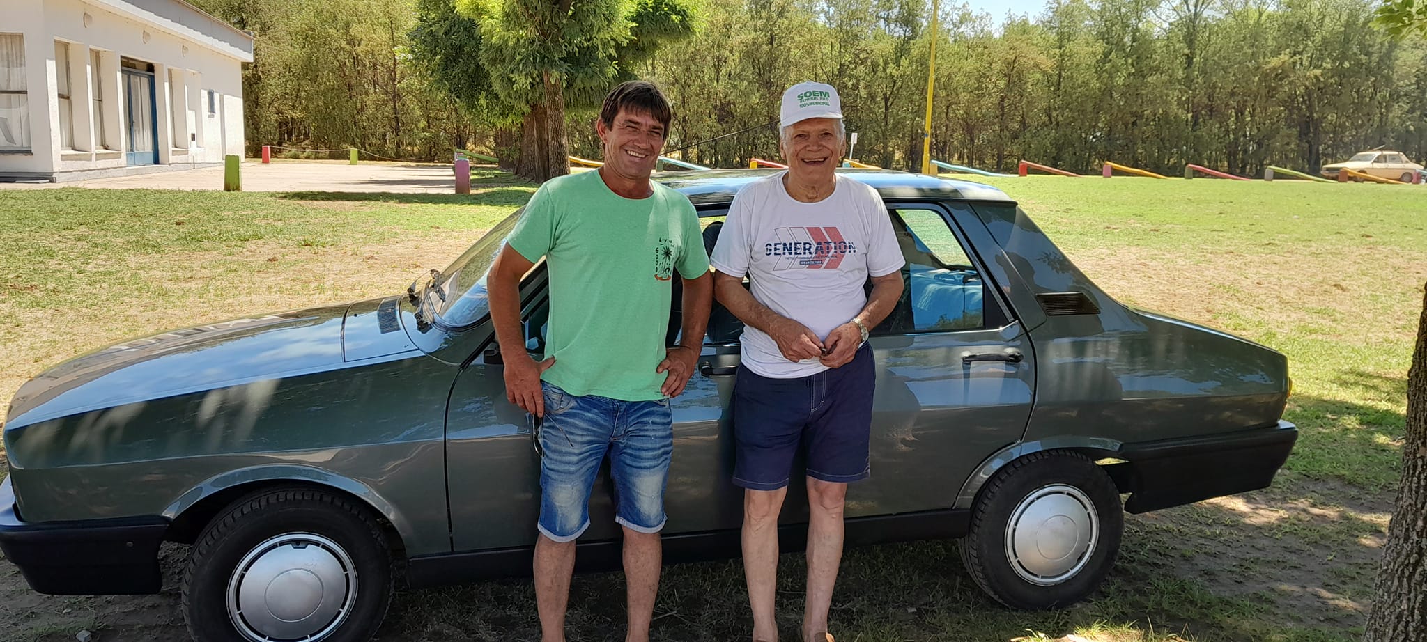 El domingo pasado fue exhibido en el balneario de Colonia Barón el Renault 12 modelo 1993, versión TL, motor 1.6, que Gonzalo Gorosito le regaló a su abuelo Alberto López para cumplirle el sueño de tener su primer auto. Ambos viven en General Pico y llegaron a esta localidad invitados por FM TOP. Vecinos quedaron maravillados al ver el estado del rodado, charlaron con su dueño y su familiar directo. Muy pronto estarán en Winifreda.
