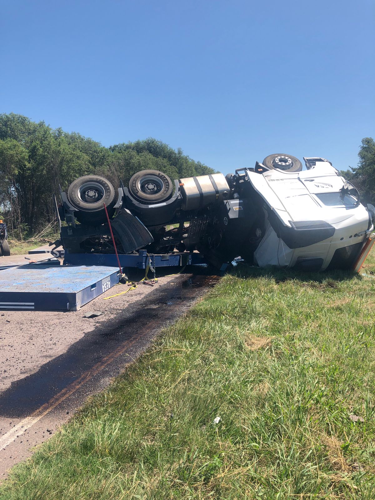Fuentes dignas de crédito informaron a este medio que el conductor de un camión Volvo que tenía enganchado un largo carretón, perteneciente a la empresa AESA, circulaba de este a oeste por la mencionada cinta asfáltica y por causas que se desconocen perdió el control del volante, mordió la banquina, se cruzó de carril y volcó. El hombre manejaba solo. Por la maniobra, el camión y el carretón quedaron atravesados sobre la carretera a la altura del kilómetro 90.