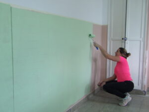 Un grupo de docentes de la Escuela primaria 104 de Winifreda recorrió comercios del pueblo, consiguió más de 50 litros de pintura donada y la semana pasada empezó a embellecer las aulas del establecimiento educativo. Las educadoras lijan las paredes y después las pintan con pinceles y rodillos. También, utilizan una escalera para subirse y … Sigue leyendo Winifreda: con donaciones de comercios, docentes pintan aulas de la Escuela 104