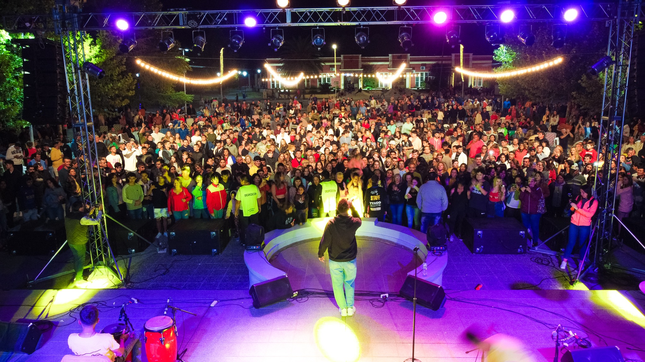 Durante su estadía en la localidad, el cantante visitó el Parque Acuático, almorzó con sus músicos en la parrilla Fuego Eterno y saboreó un helado en la heladería de María Rosa García. En la plaza, las infancias se divirtieron tirándose espuma de carnaval. En las primeras horas del lunes la multitud se fue feliz y contenta.