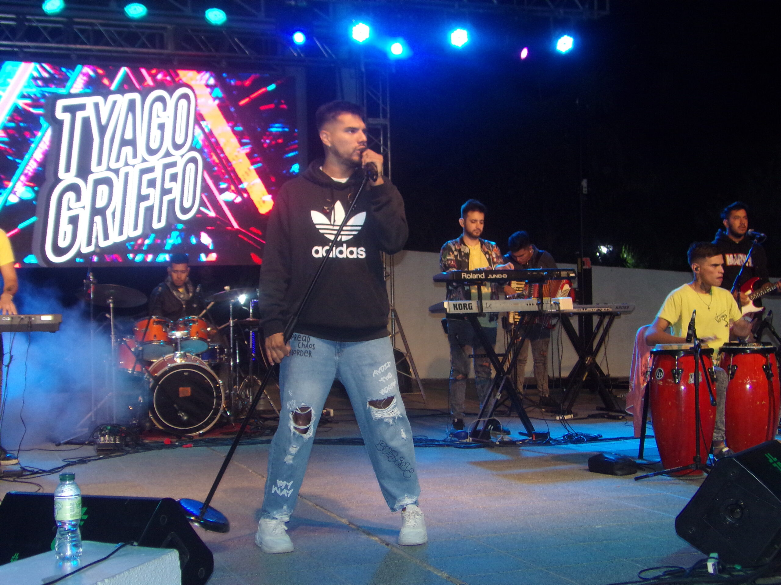 La primera en subirse al anfiteatro fue la cantante cordobesa Lu Irigoyen quien durante más de una hora cautivó a los presentes con un amplio repertorio de temas latinos de moda y fue ovacionada. Cuando terminó su show hubo una breve pausa y después llegó el plato fuerte de la velada. El locutor Alexis Villena fue el encargado de anunciar la presentación de Tyago Griffo, el hijo de Gladys “La Bomba Tucumana”, con una gran trayectoria en los escenarios nacionales.