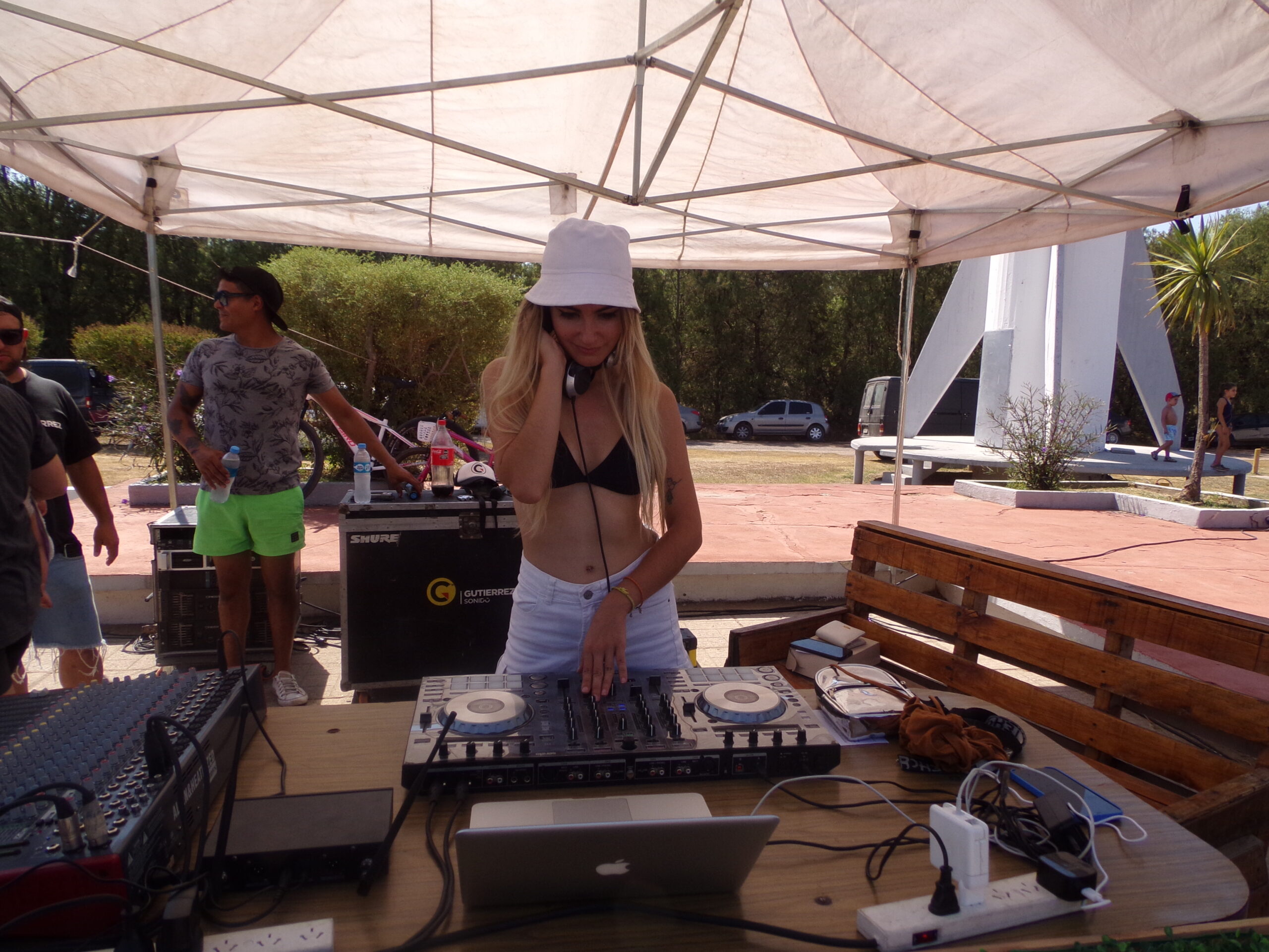 Entrevistada por INFOWINI, Flor contó que es nativa de Tres Arroyos, Buenos Aires, y en breve cumplirá cinco años como Dj. «Estuve trabajando bastante en La Pampa más específicamente en Catriló, Quemú Quemú, Santa Rosa, Victorica y en localidades del sur de la provincia siempre tocando en diferentes fiestas, como la de egresados, boliches, cumpleaños de 15 y demás. La publicidad de boca en boca y de los boliches llegó a oídos de Damián Aliendro con quien el año pasado laburamos juntos en un evento en Catriló. Quedó el contacto y por medio de él vine a Colonia Barón por primera vez», explicó sonriente. A su lado estaba Aliendro con un micrófono animando la jornada.