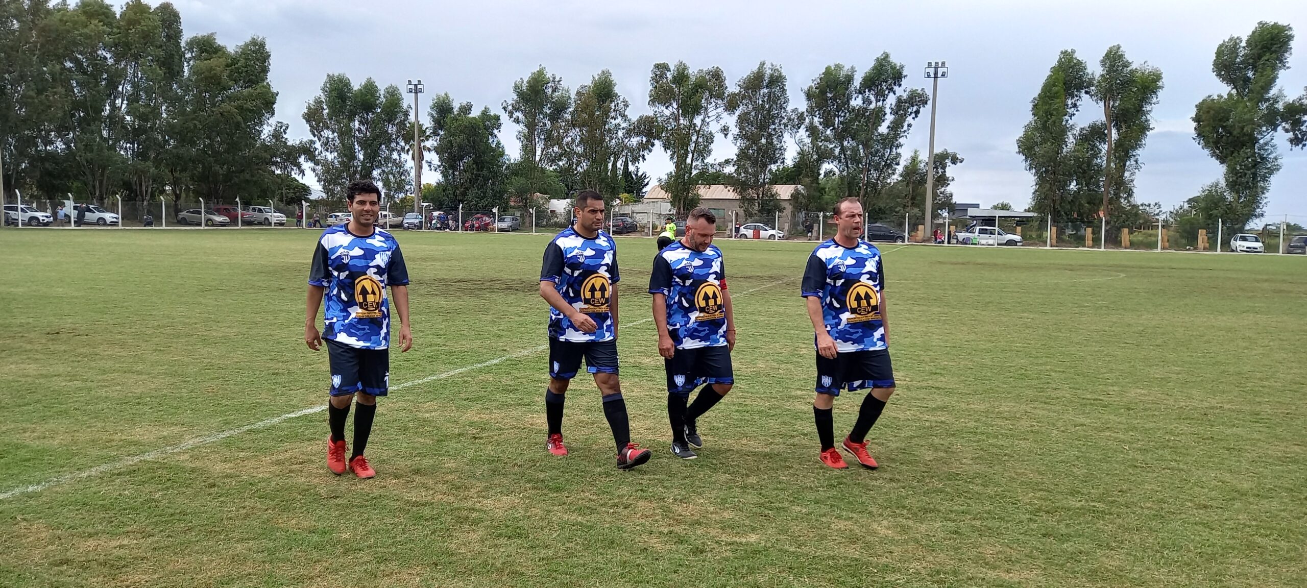 Jugadores de Veteranos de Winifreda se retiran de la cancha exhaustos tras la goleada.