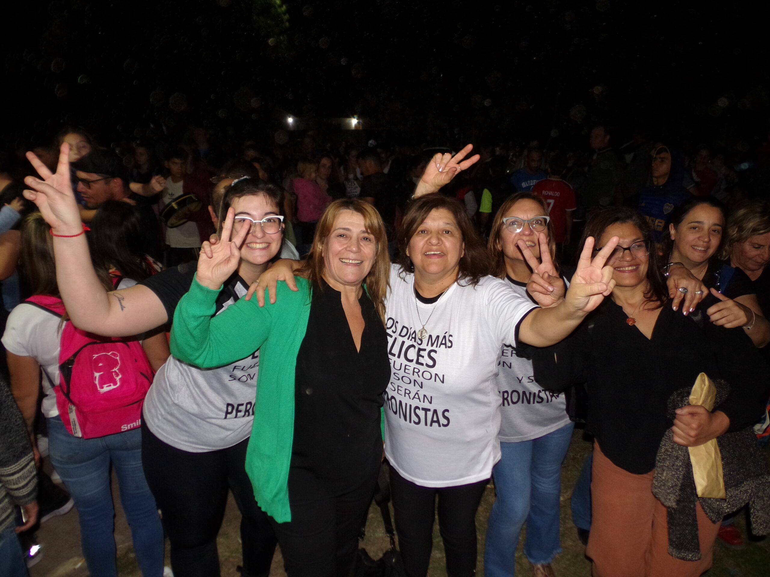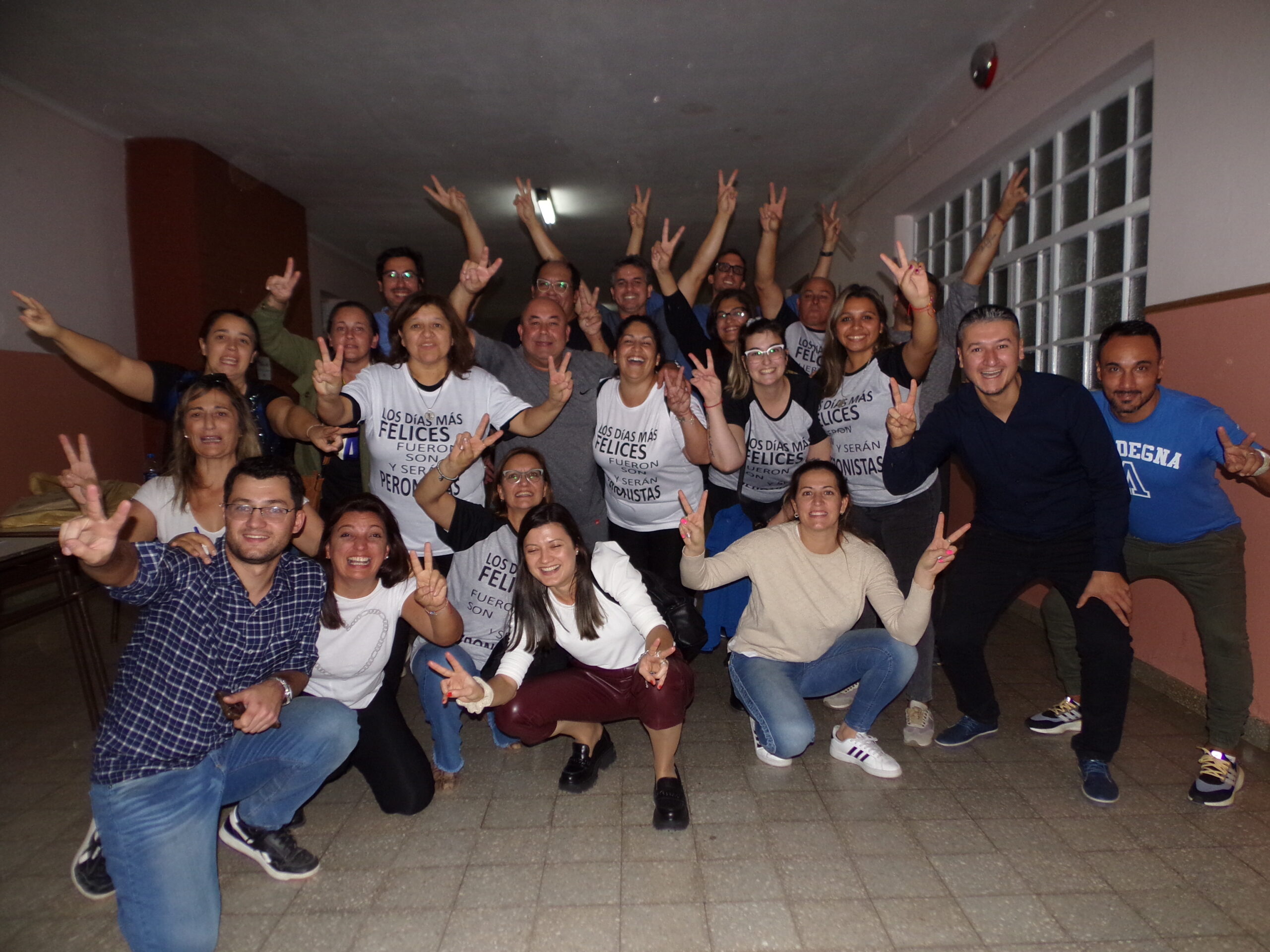 Militantes, afiliados/as, simpatizantes, jóvenes con bombos, platillos y trompetas esperaron los resultados comiciales en la puerta del edificio educativo y cuando los fiscales salieron y los dieron a conocer estallaron en gritos de alegría, se abrazaron y muchos lagrimearon. Al cántico de «Perón, Perón» y «Todos unidos triunfaremos» marcharon en caravana hasta la Unidad Básica donde los estaba esperado la intendenta Adriana García, la gran ganadora del día. La envolvieron en abrazos y besos. Se sacaron fotos con ella. Y la fiesta siguió. La euforia era total.