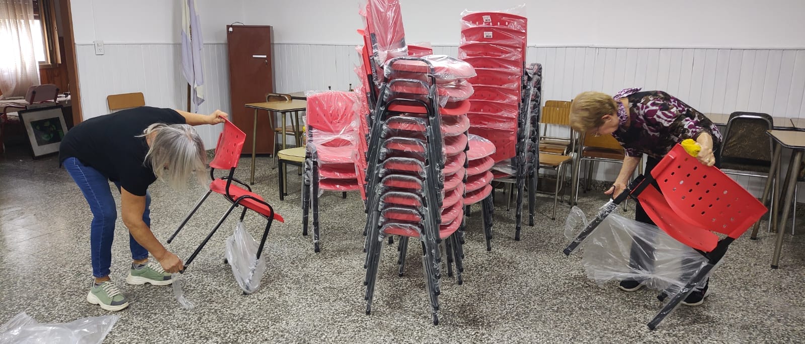La secretaria Adriana Russmann y la tesorera María Cristina Fernández, informaron que adquirieron 55 sillas en la sección Artículos del Hogar de la Cooperativa Eléctrica abonando 660.000 pesos. La entidad solidaria les colaboró no cobrándoles el flete de la mercadería y regalándoles 5 sillas.
