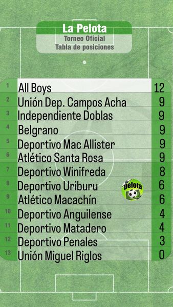 Tabla de posiciones: Winifreda con 8 puntos.