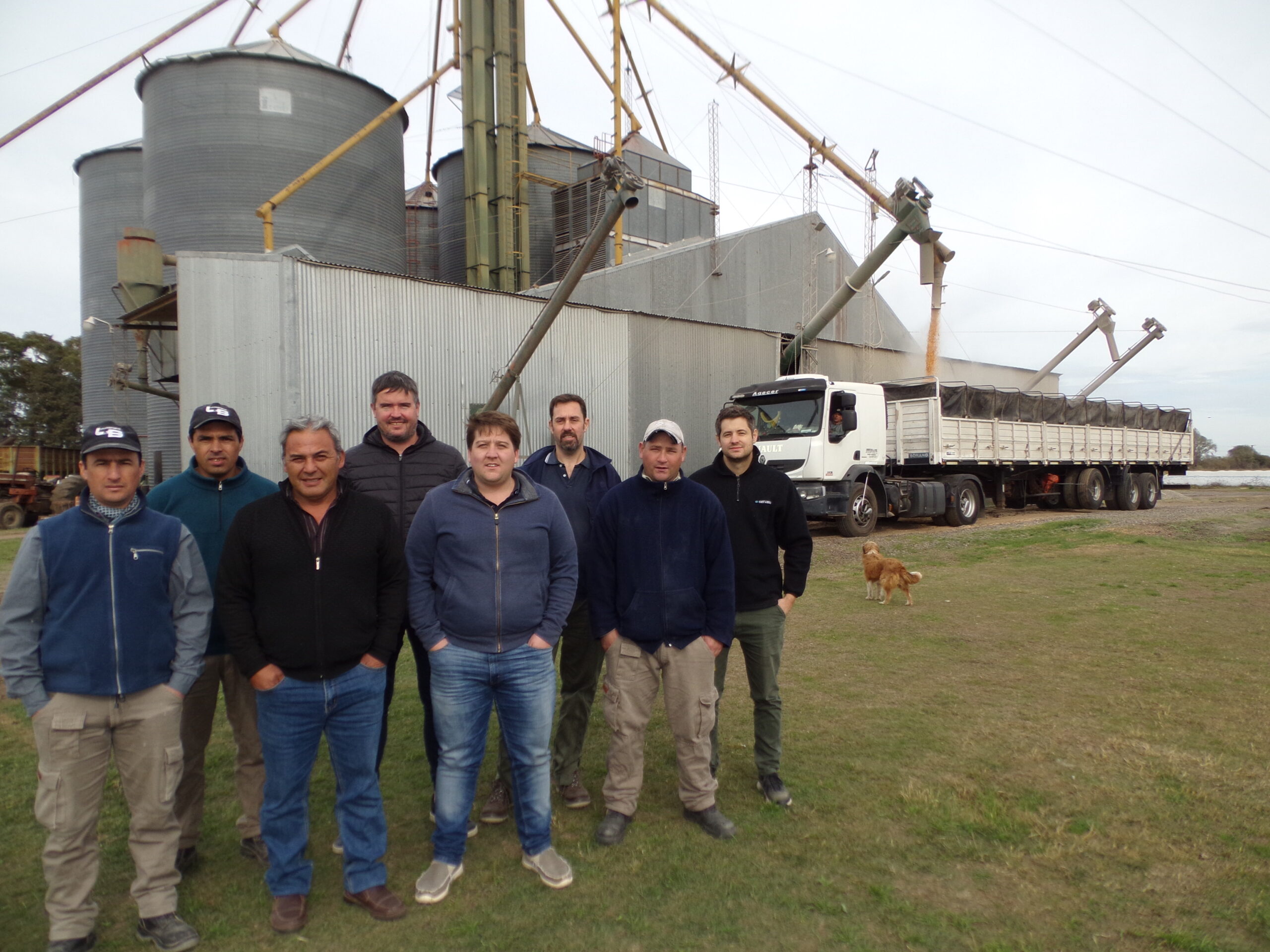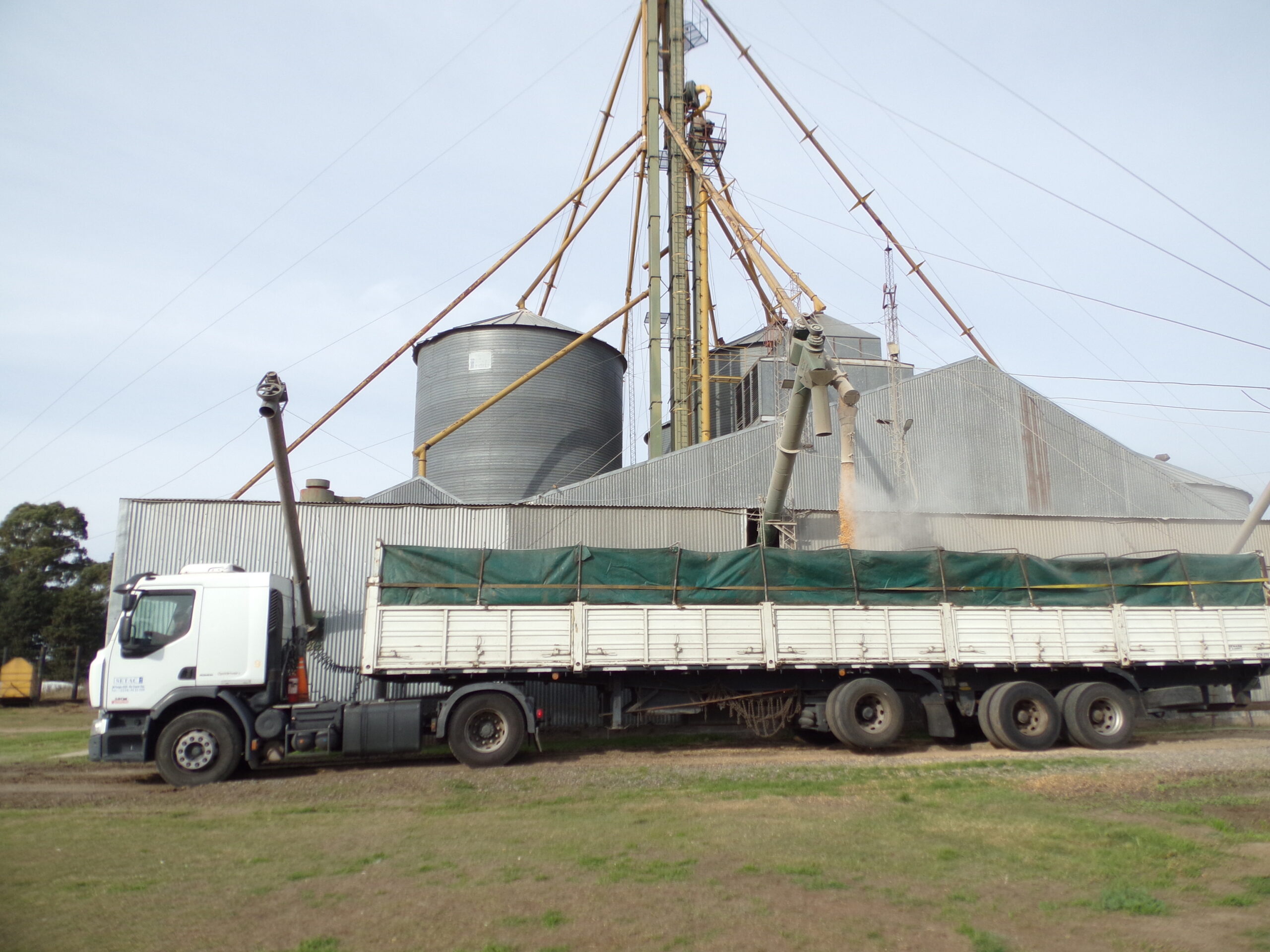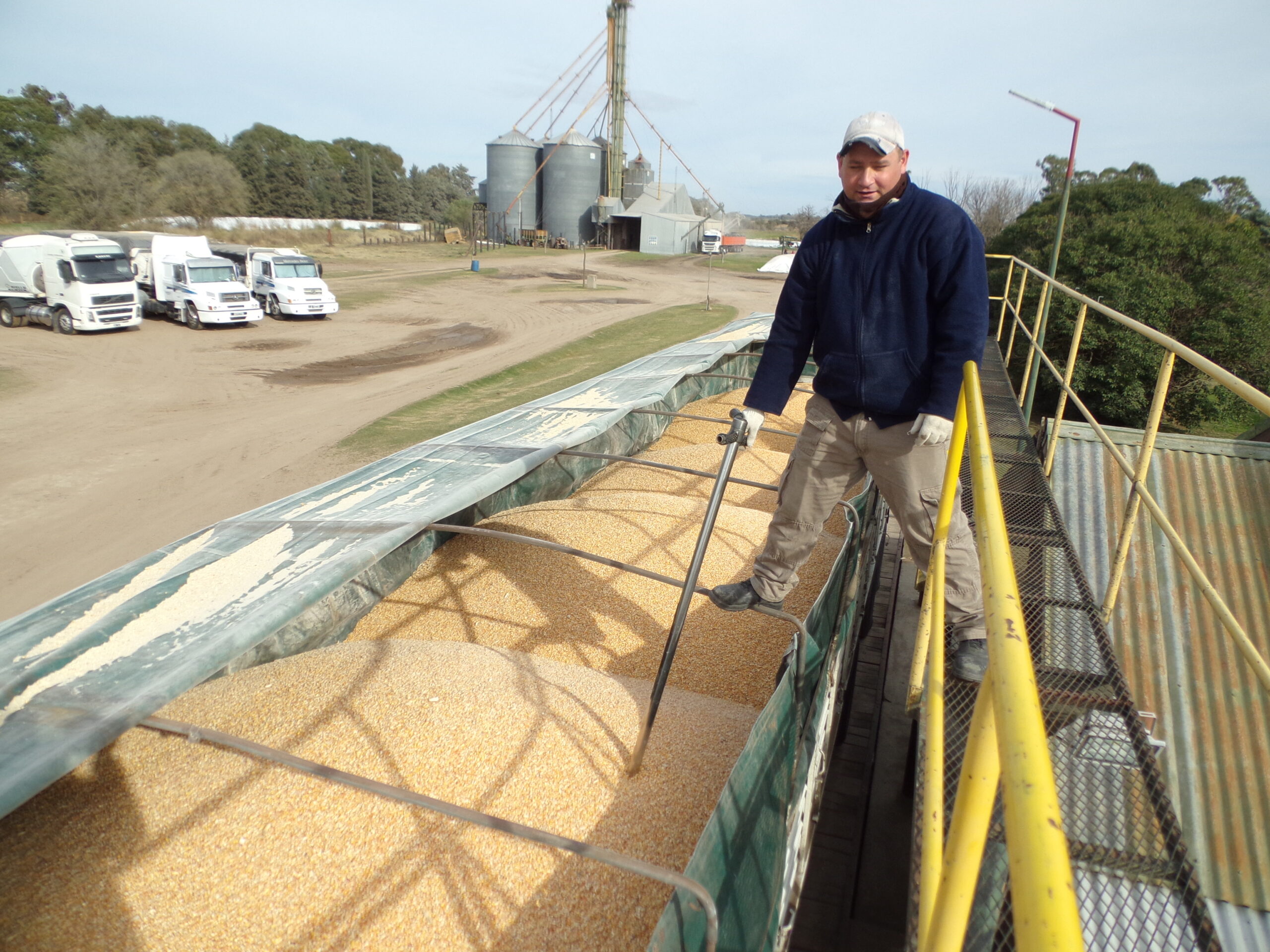 Desde ese lugar parten los camiones habilitados para el comercio internacional con la producción pampeana. El lunes pasado, once camiones con batea, chasis, acoplado, semirremolque, conducidos por transportistas argentinos, se llevaron 28 toneladas de maíz cada uno. El encargado administrativo de la planta es el winifredense Adrián Wilberger. A su lado trabaja Roberto Pozas, apoderado y representante legal en el país de Estancia Casas Viejas.