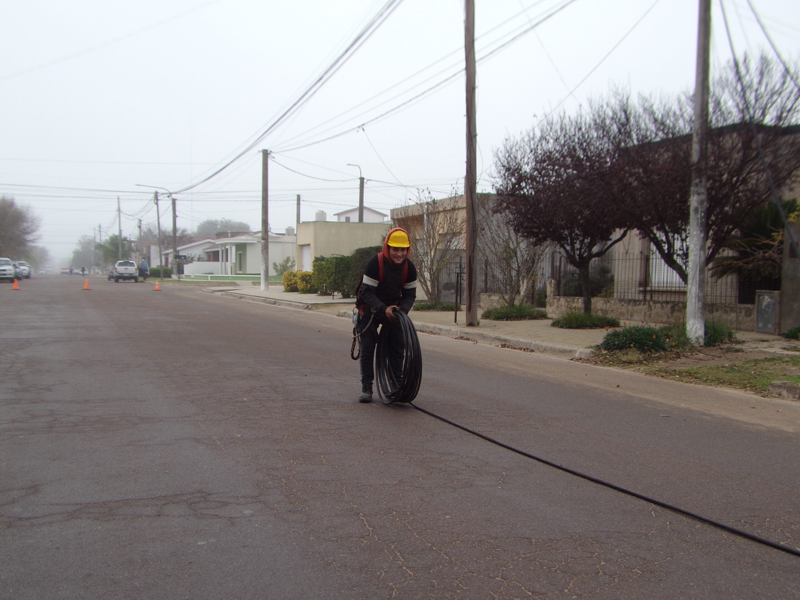 Consultado cuántos metros de cables se retirarán, respondió que serán «aproximadamente 9.000 metros». Realizan estas labores «por órdenes de Telefónica. Este es el segundo pueblo en el que estamos trabajando, el primero fue Arata y seguiremos con Mauricio Mayer».