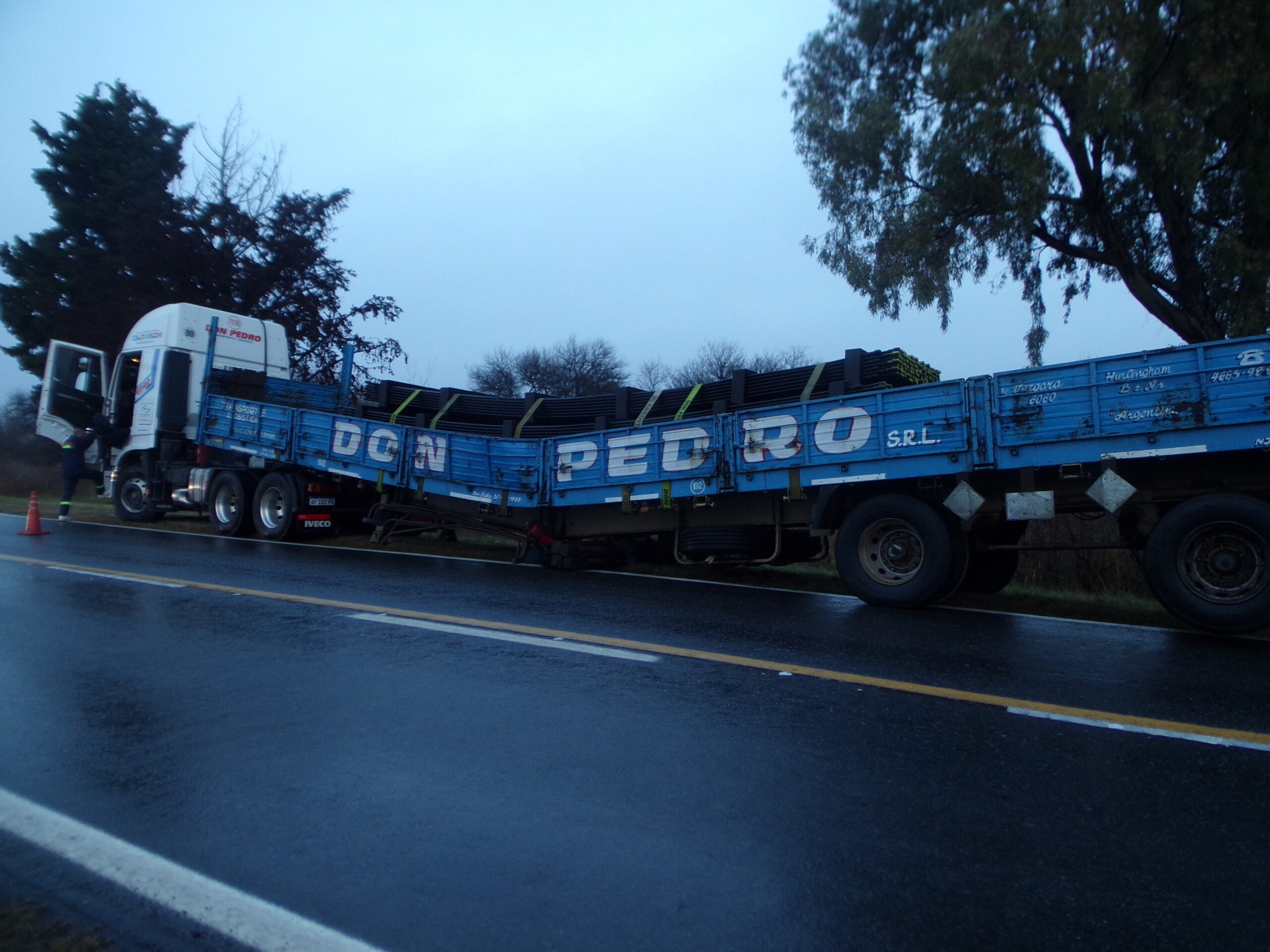 «Este es un camión de gran porte cargado con varios paquetes de varillas de 3.000 kilos cada uno, en total son 26.000 kilos», amplió el trabajador del volante. «Estuve toda la madrugada en la ruta. Ahora estoy esperando que llegue otro camión de la empresa para hacer el traspaso de la carga y continuar viaje», finalizó el hombre que resultó ileso. Desde la provincia de Neuquén vendrá una grúa para llevarse el camión roto.