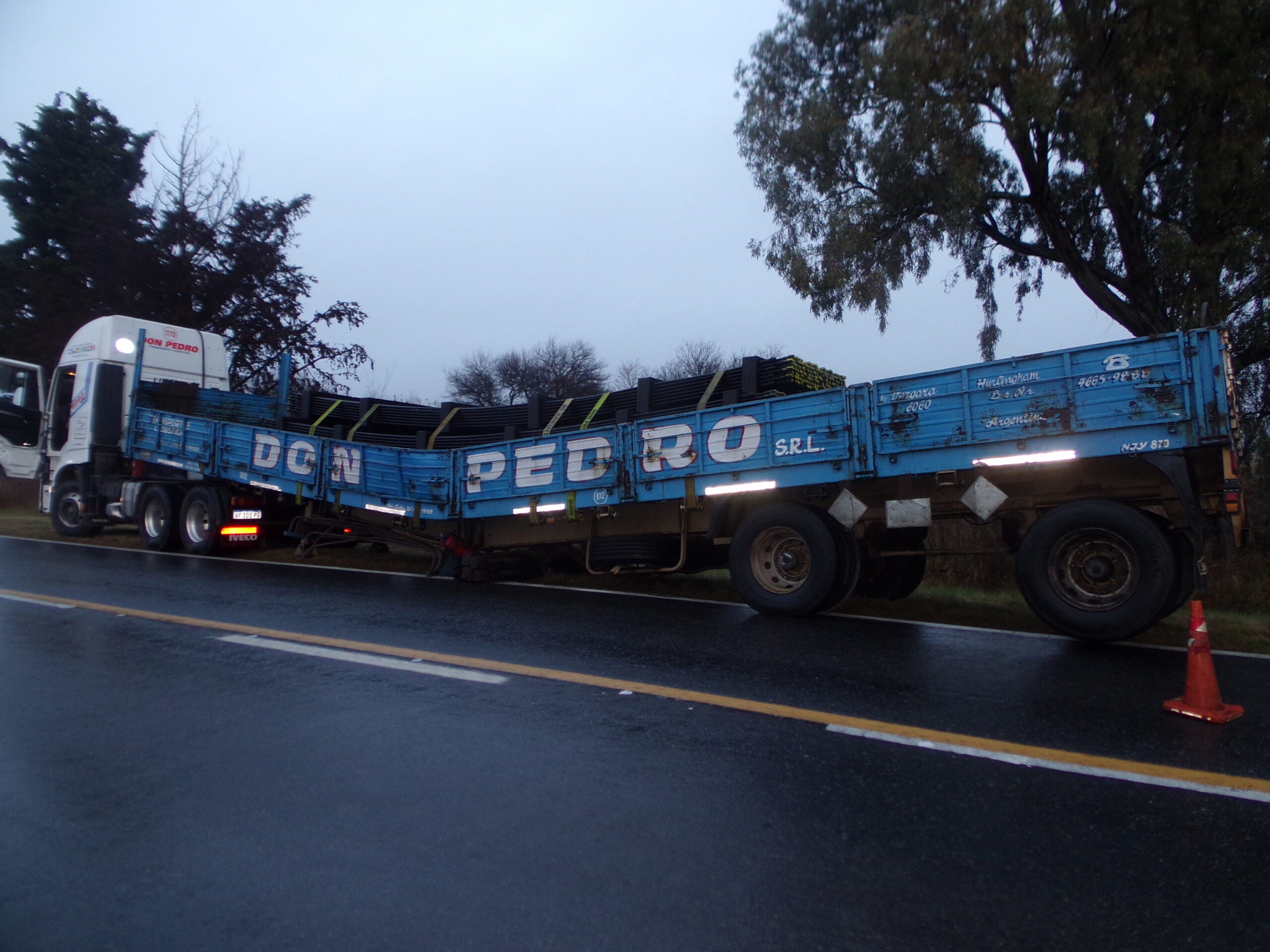 «En el lugar hay presencia de Policía y personal vial indicando a quienes transiten, por donde dirigirse», avisaron. También detallaron que mañana miércoles, se realizarán las tareas de traspaso de los materiales a otro camión, por lo cual es probable que, durante un lapso estimado de dos horas, se desvíe el tránsito por la banquina o media calzada.