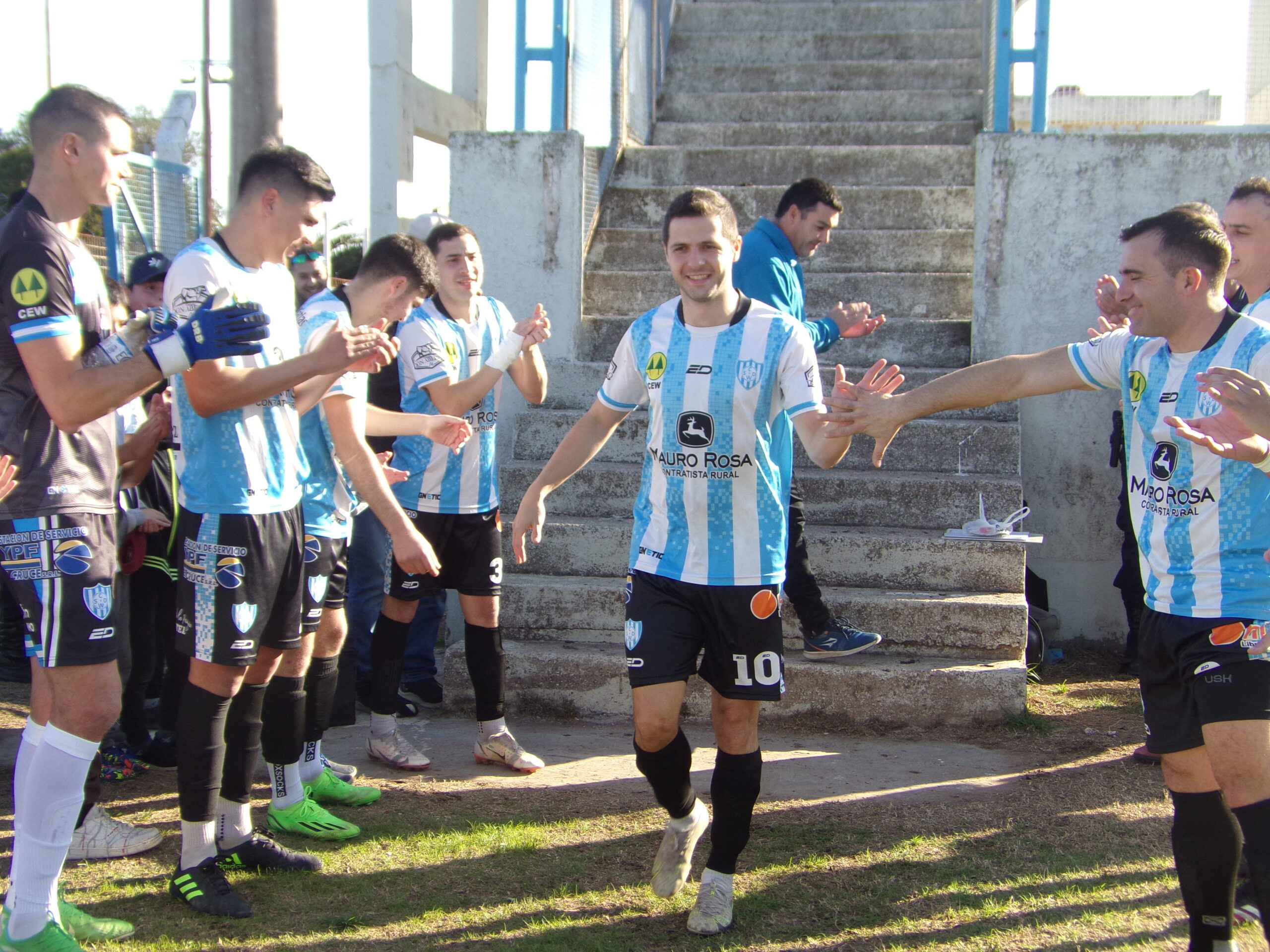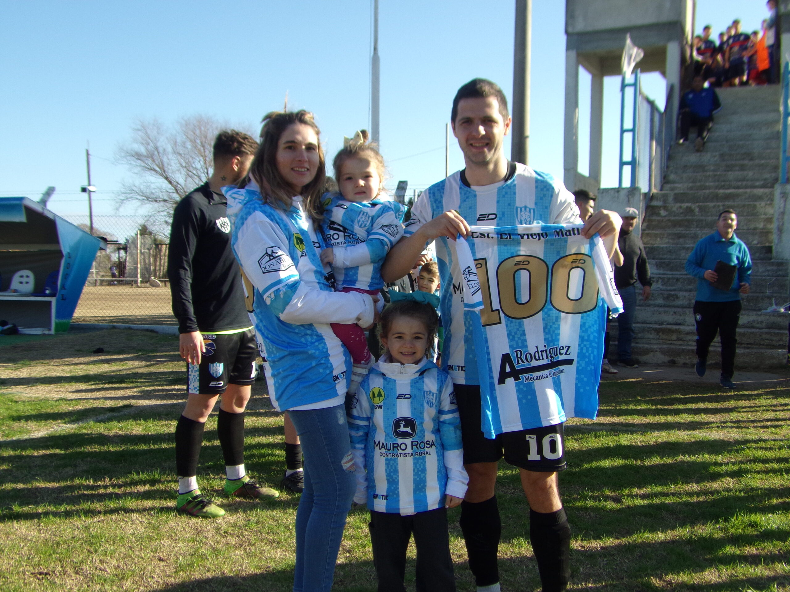 En la previa del duelo contra Mac Allister de Santa Rosa, disputado el domingo en el estadio Miguel Eloy Baldovino, el máximo goleador del equipo Girasolero ingresó al campo de juego y fue recibido con aplausos por sus compañeros de equipo que lo estaban esperando. Ellos le hicieron entrega de una camiseta que tiene estampado el número 100.