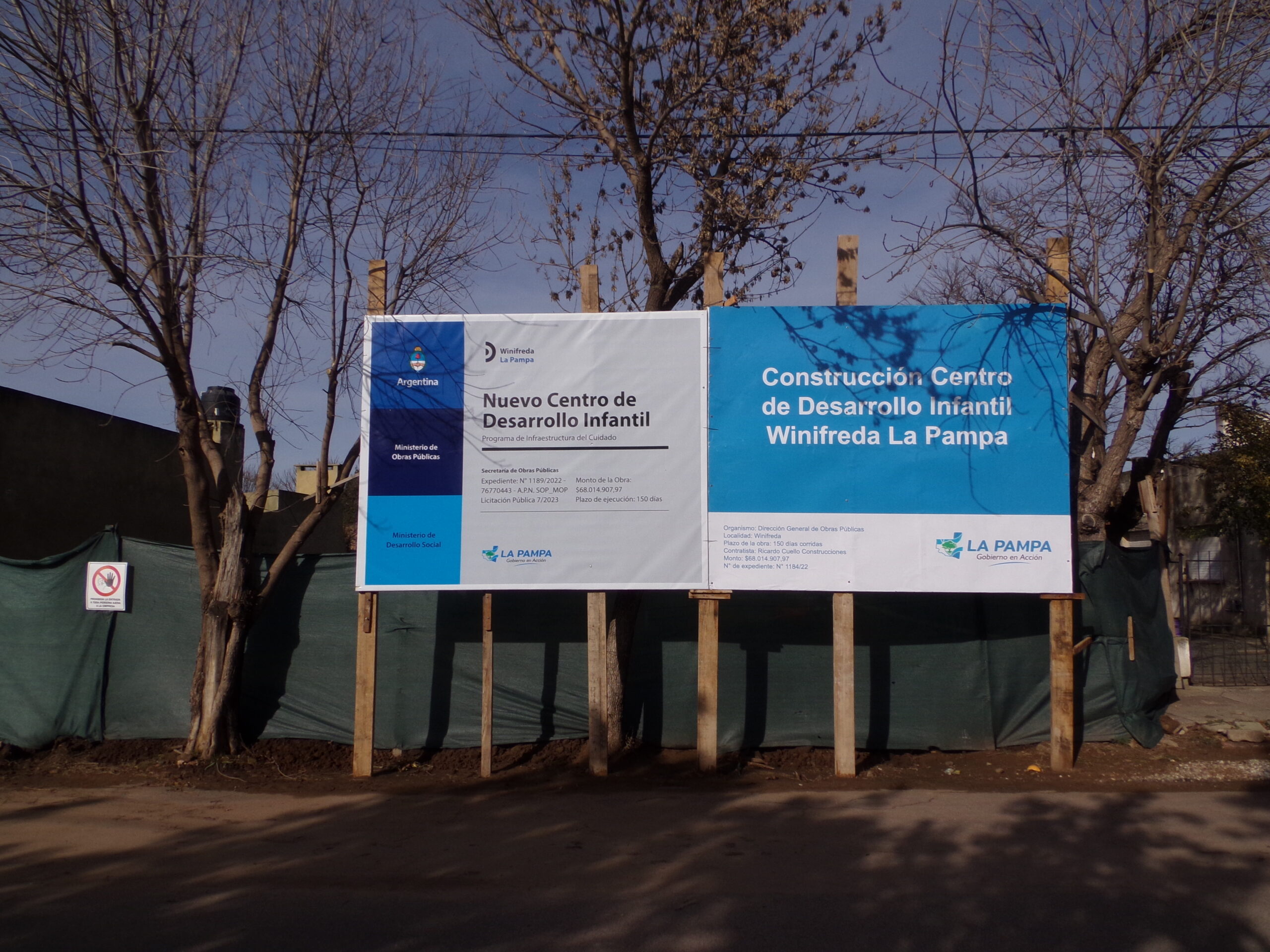 La empresa Ricardo Cuello Construcciones de Santa Rosa comenzó con la construcción del Nuevo Centro de Desarrollo Infantil (CDI) de Winifreda. El edificio se emplazará en un terreno municipal ubicado en calle 9 de Julio, entre Bartolomé Mitre y Pedro Luro. En ese predio, los operarios de la firma adjudicataria ya instalaron el obrador y están trabajando.