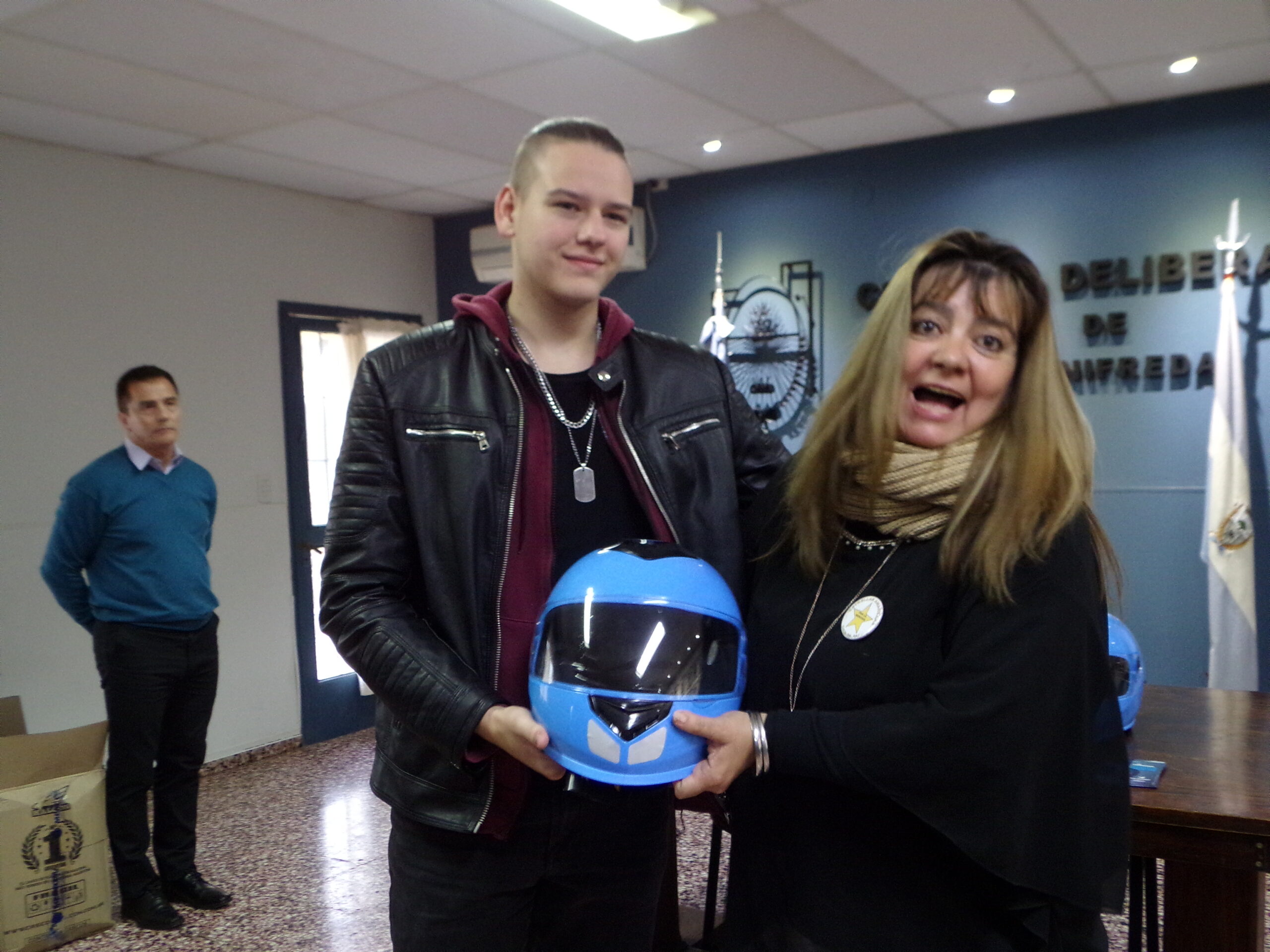 Ante una pregunta puntual, respondió que el casco «reduce entre un 40 y 50 por ciento la posibilidad de fallecer» y reveló que para recibir el elemento protector los motociclistas deben tener la licencia habilitada. «Esta capacitación está destinada preferentemente a los que trabajan en el servicio de cadetería y otros rubros, trabajadores que se encuentran en permanente peligro, la idea es que vengan y el condicionante es que tengan habilitada la licencia».