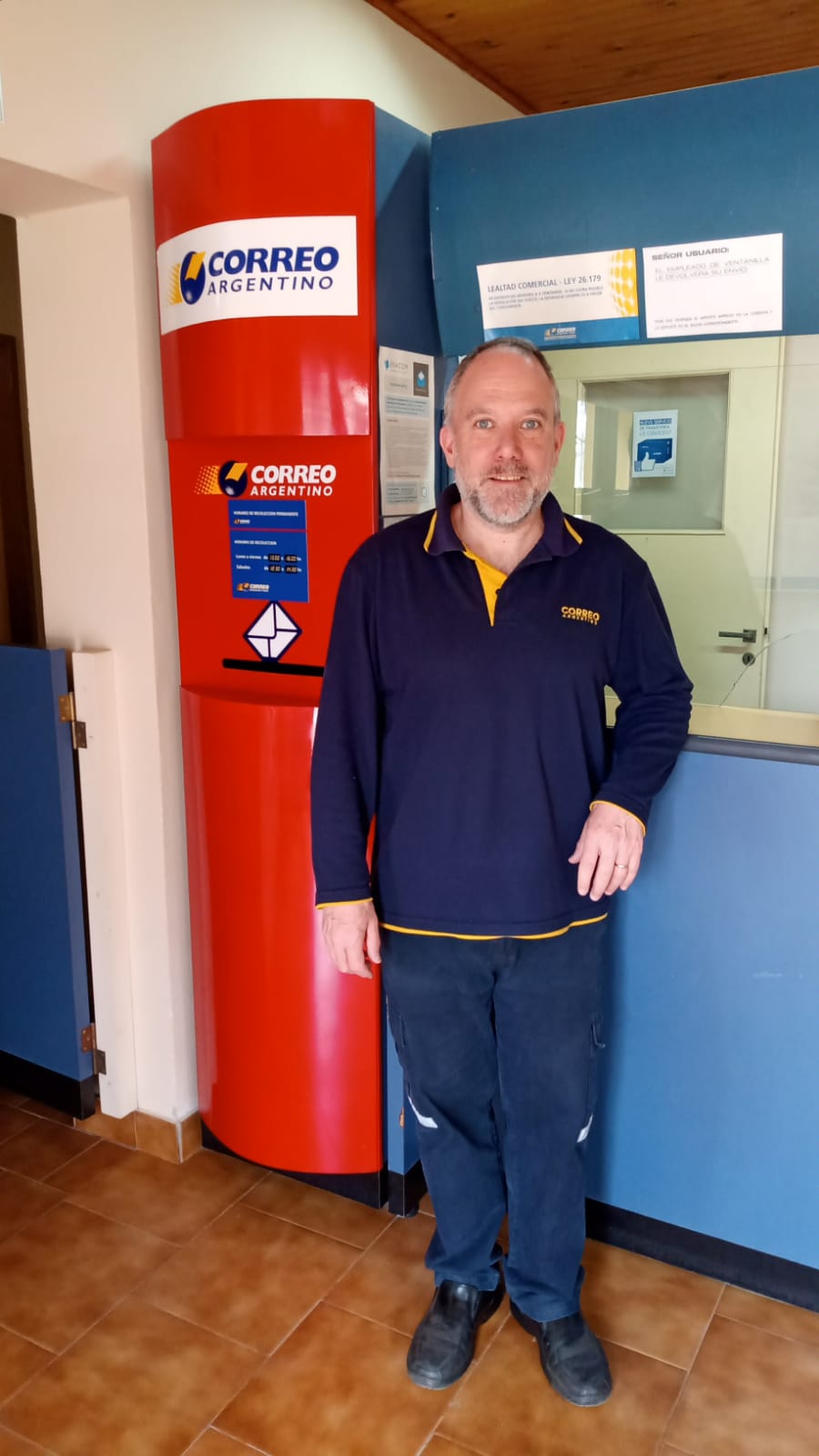 Néstor Lasagno tiene 49 años y es empleado del Correo Argentino. El trabajador carga sobre sus espaldas 28 años de experiencia y recorridas por calles de dos localidades pampeanas. Durante cuatro años trabajó en su pueblo natal, Guatraché, y desde hace 24 años está al frente de la oficina del Correo oficial en Winifreda donde actualmente vive con su familia en una vivienda de la empresa estatal postal. En la localidad también se encarga de la distribución de la correspondencia y encomiendas casa por casa donde es recibido por vecinos y vecinas. Hace sus rondas en bicicleta.