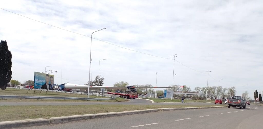 Camión que transporta pala eólica pasó por el cruce de Winifreda