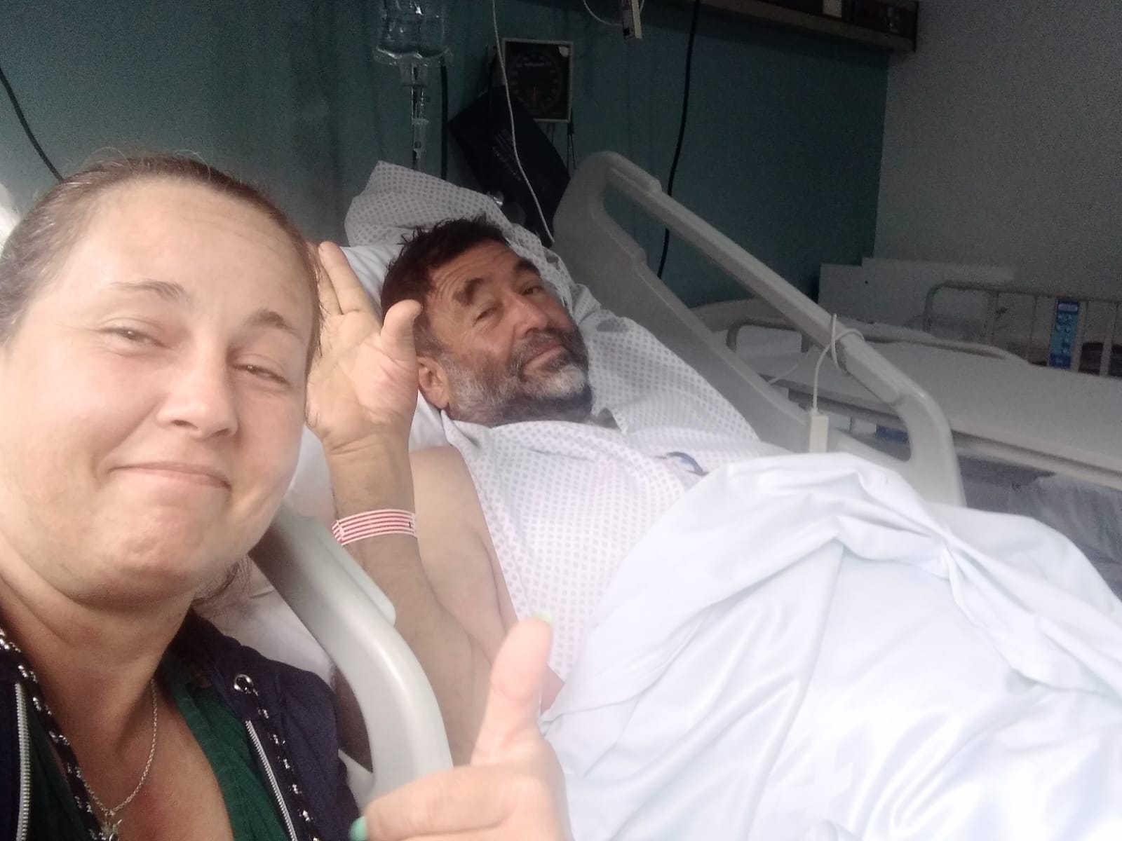 Foto: Elvio Millaleo internado tras el trasplante, junto a su esposa Claudia Kaiser.
