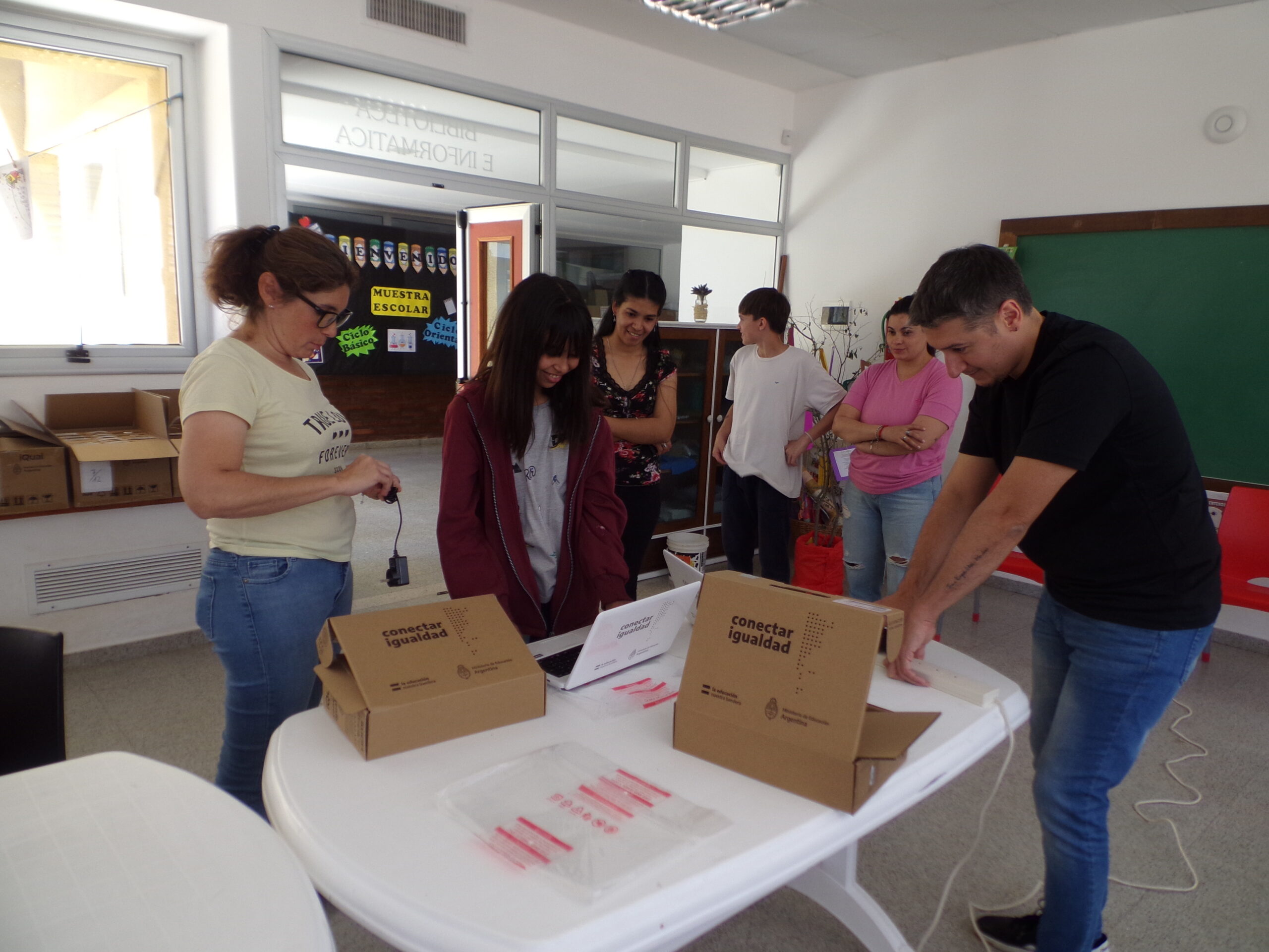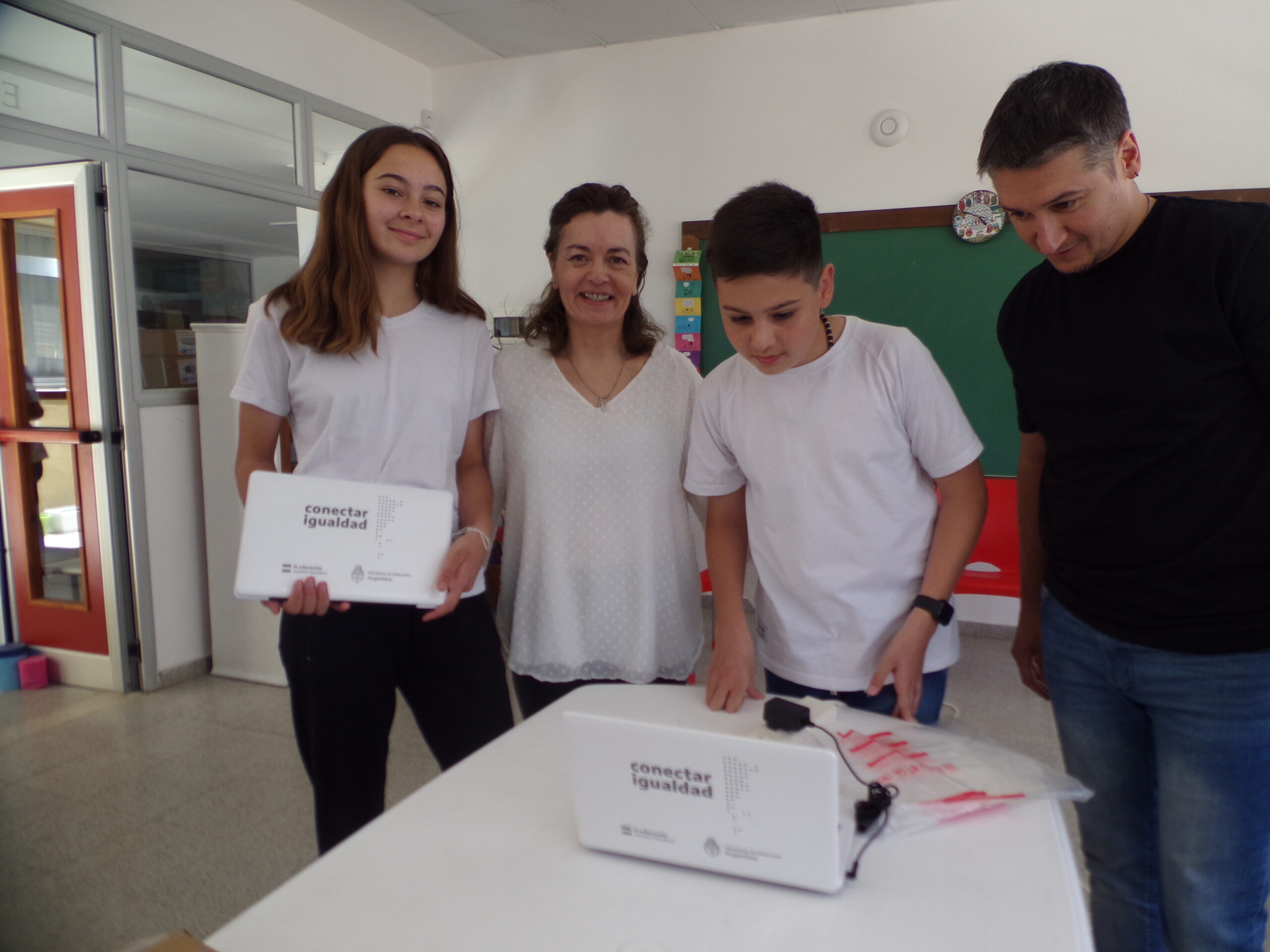 La entrega de las computadoras portátiles tuvo lugar en la biblioteca del edificio educativo con la presencia de Cecilia Chaves, el profesor Marcos Ponce y la administrativa Nora Taramarcaz. Los mencionados encendieron las máquinas delante de cada estudiante para que comprueben su funcionamiento y sus progenitores firmaron una planilla antes de retirarse.
